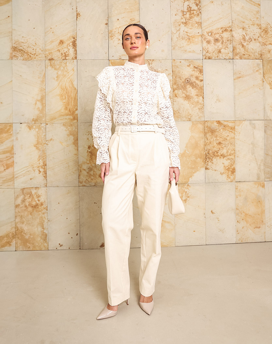 Доставка впродовж 2-5 робочих днівБрюки вільного крою із защіпами, завужені до низу. Мають функціональні кишені та резинку позаду на поясі.