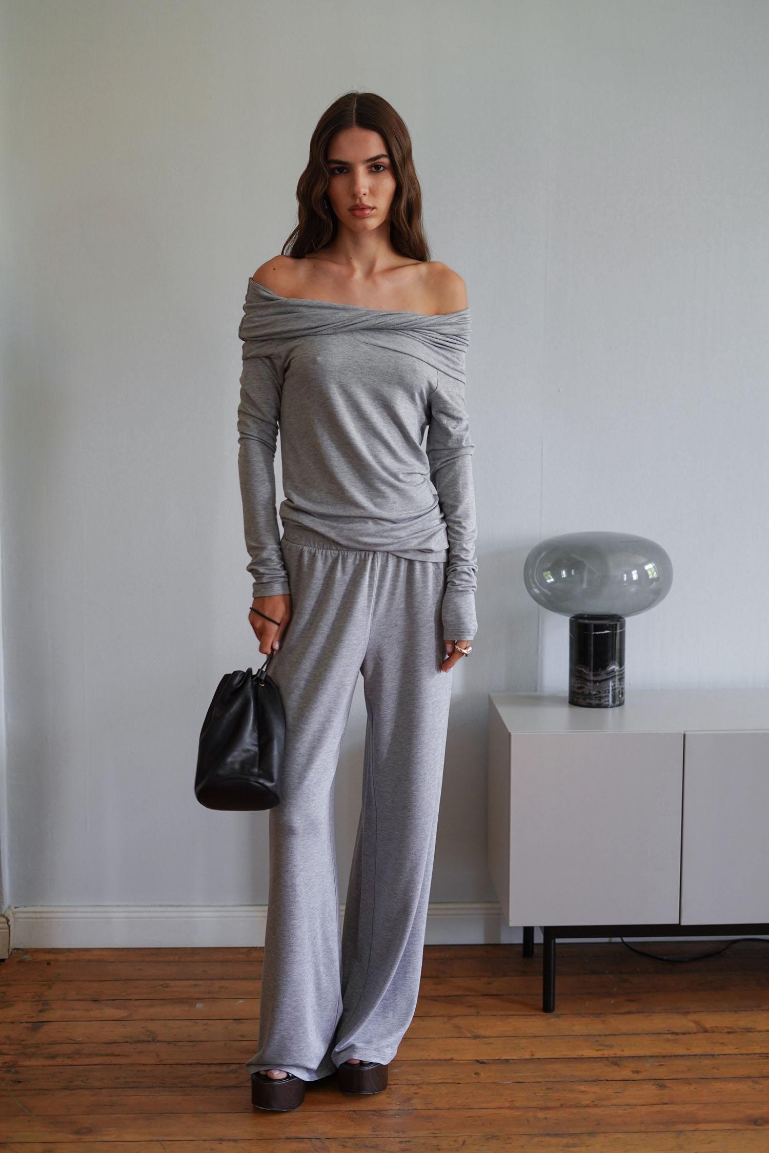 Брюки трикотажні вільного крою сірий меланж