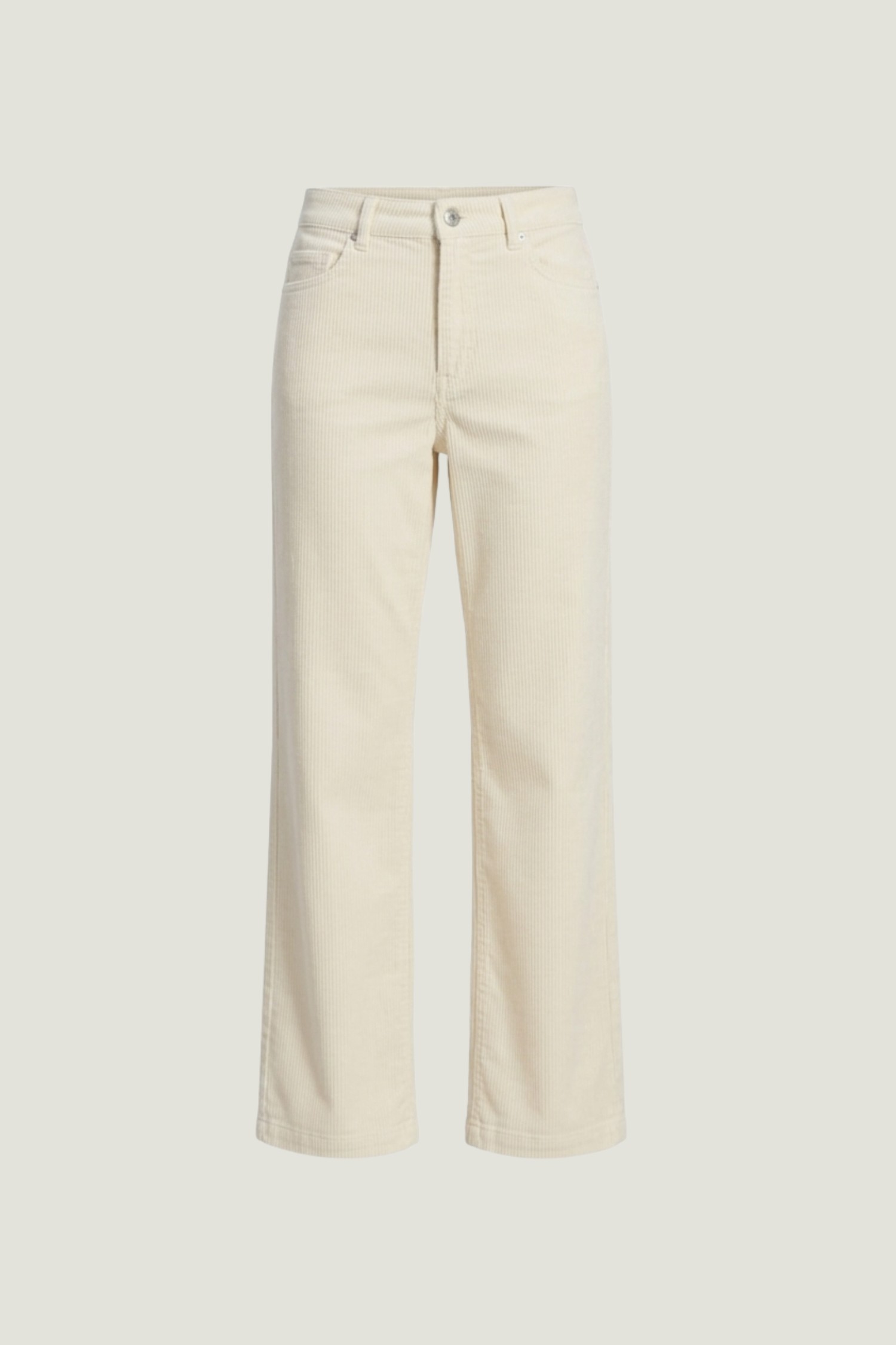 ДоставкаБрюки жіночі молочного кольору з вільним кроєм і високою посадкою. Зроблені з текстурованого вельвету. Мають функціональні бокові та задні кишені.