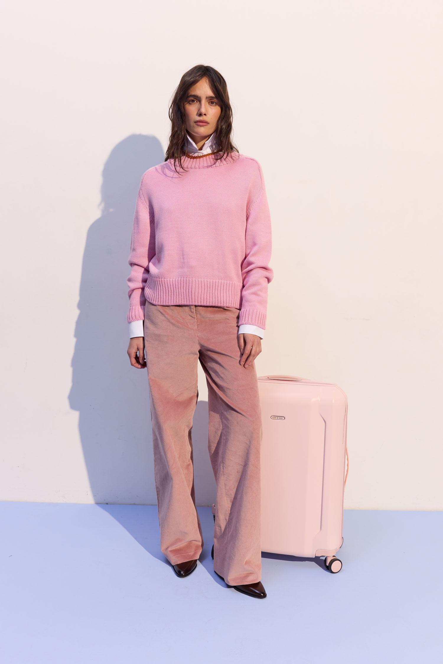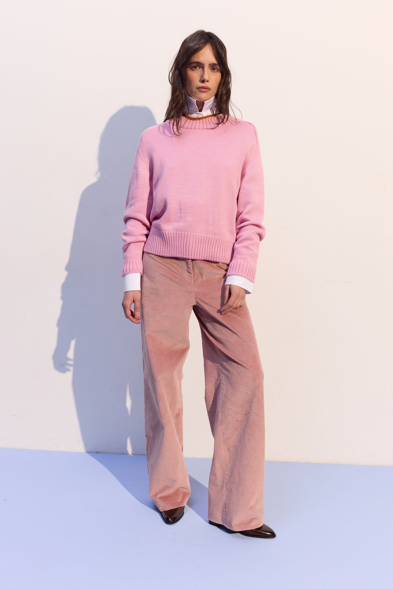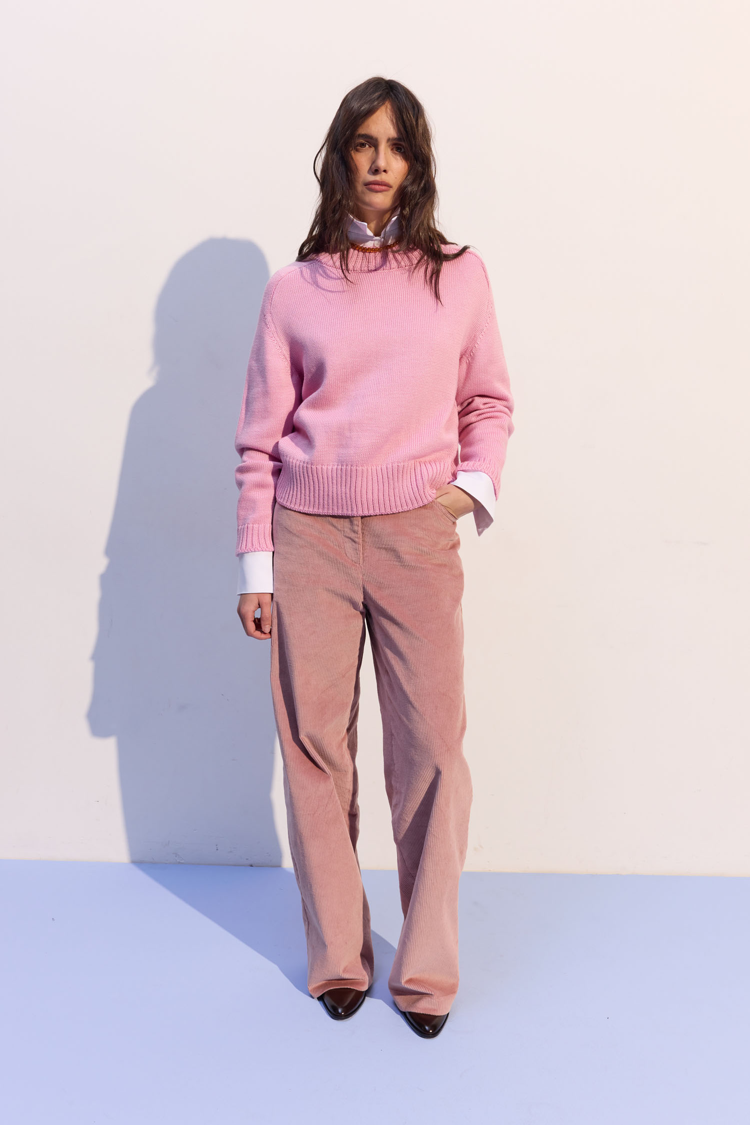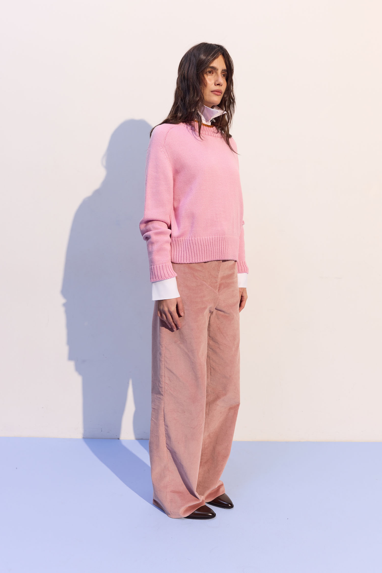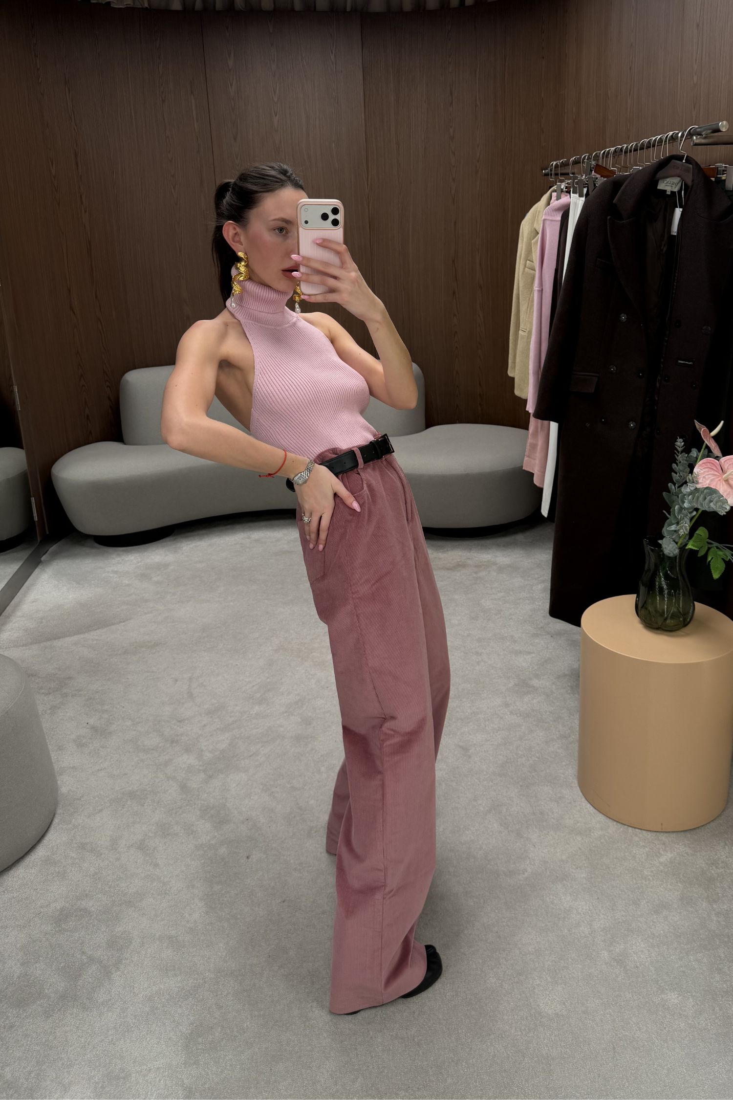 Брюки з вельвету рожевого відтінку з вільним кроєм. Підходять і для денних, і для вечірніх образів. М’яка текстура вельвету надає глибині та фактурності. Висока талія формує чіткий силует. Рекомендуємо поєднувати з жакетом, затишним трикотажем або сорочкою.