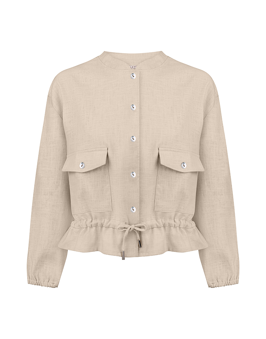Бомбер із довгим рукавом без коміра з кропиви та льону. Об’ємний силует.