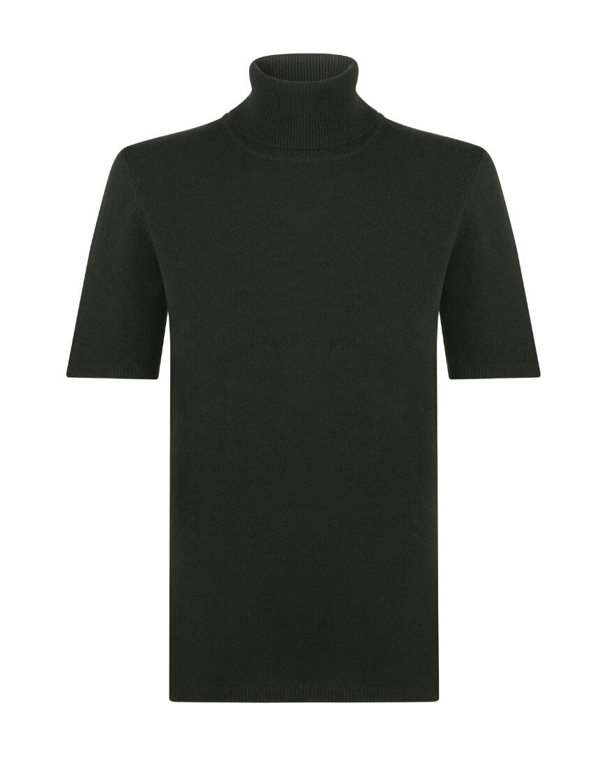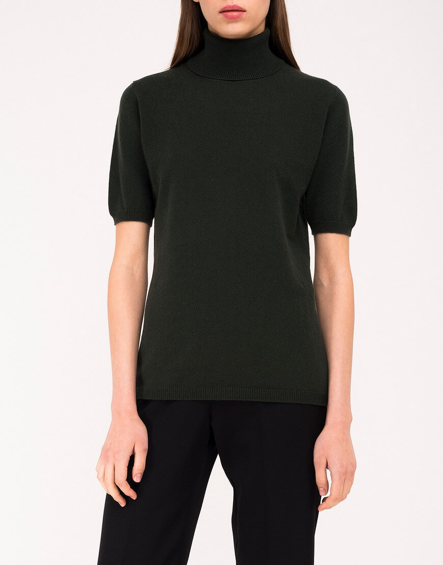 Гольф, короткий рукав. Обтягуючий. Легко поєднується з будь-якими брюками, спідницями, джинсами або комбінезоном.