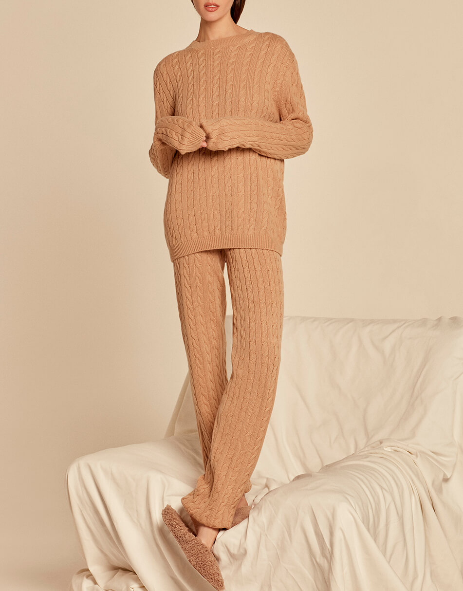 Кабельний в’язаний светр оверсайз із круглим вирізом.