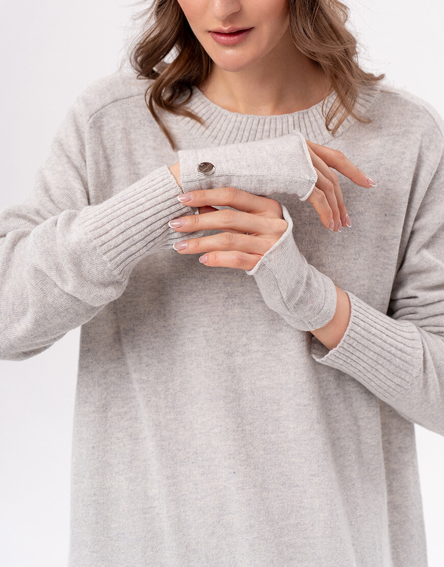 Мітенки, виконані з кашеміру та ультратонкої мериносової вовни. Декор – фірмовий аксесуар бренду