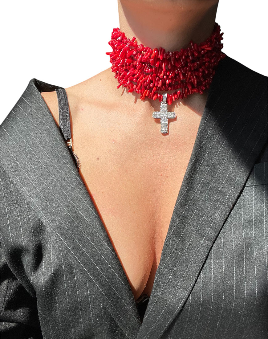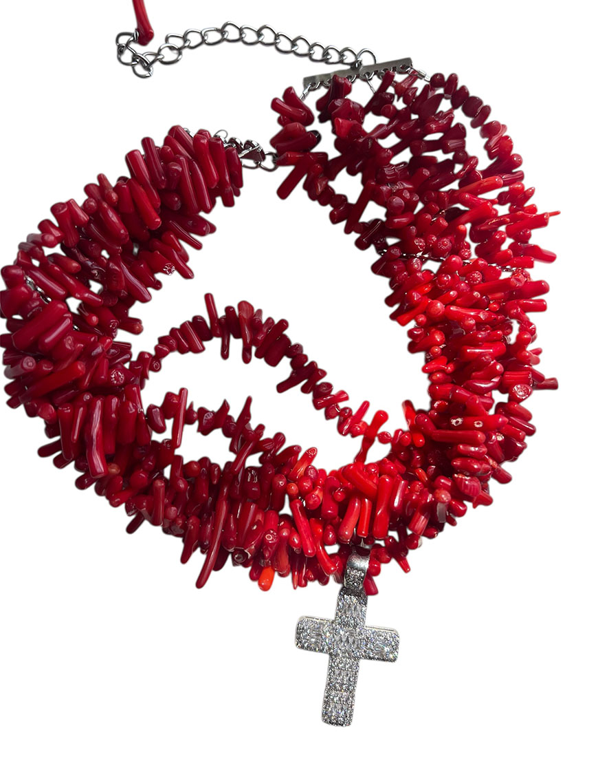 Чокер червоний корал з хрестом