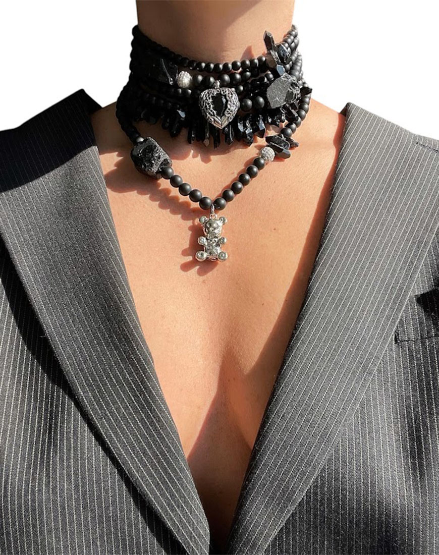 Доставка впродовж 2-5 робочих днівЧокер чорний з ведмедиком і серцем