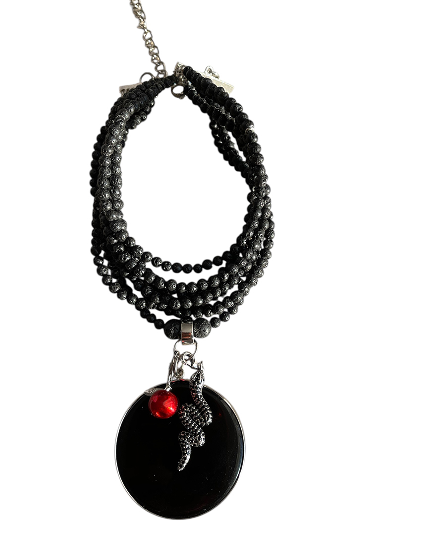 Намистини лава, підвіски срібло 925, чорне скло, фурнітура нержавіюча сталь