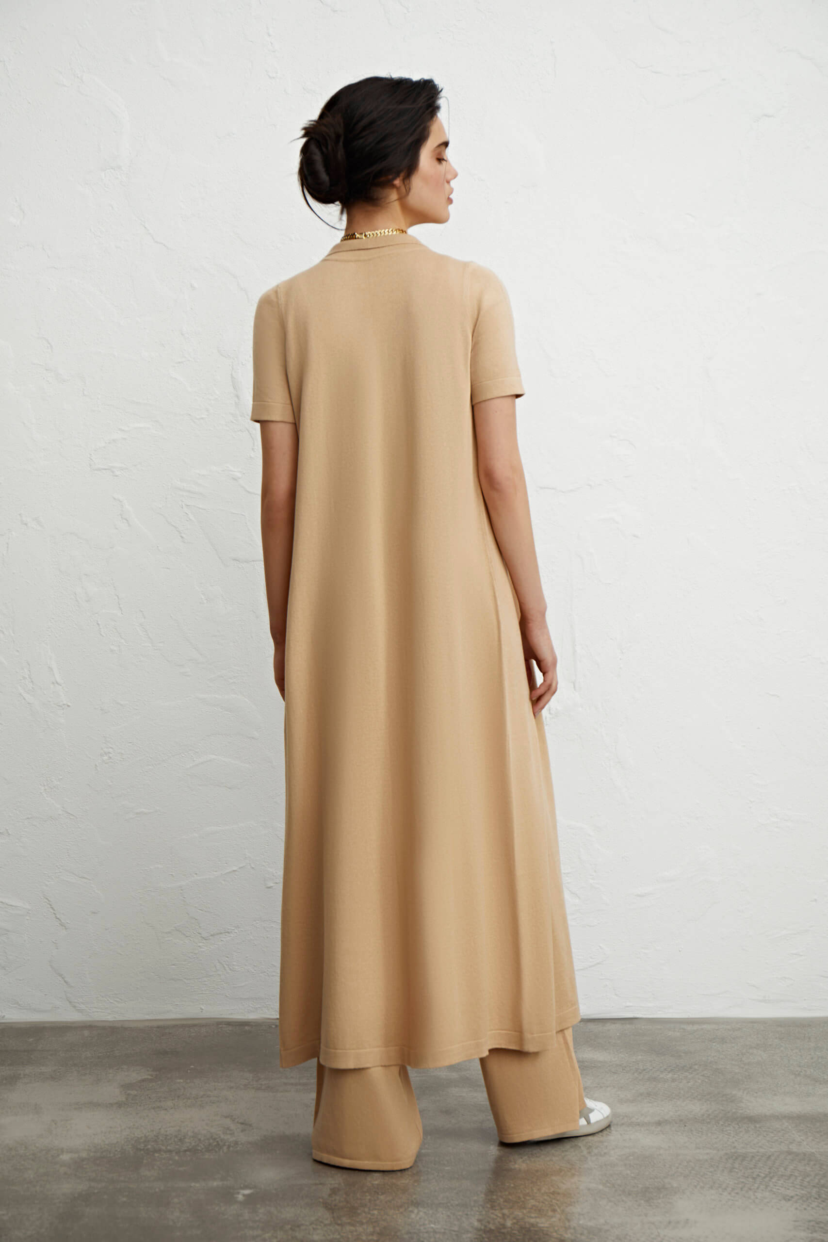 Кардиган із загостреним коміром. Без застібки із знімним поясом.