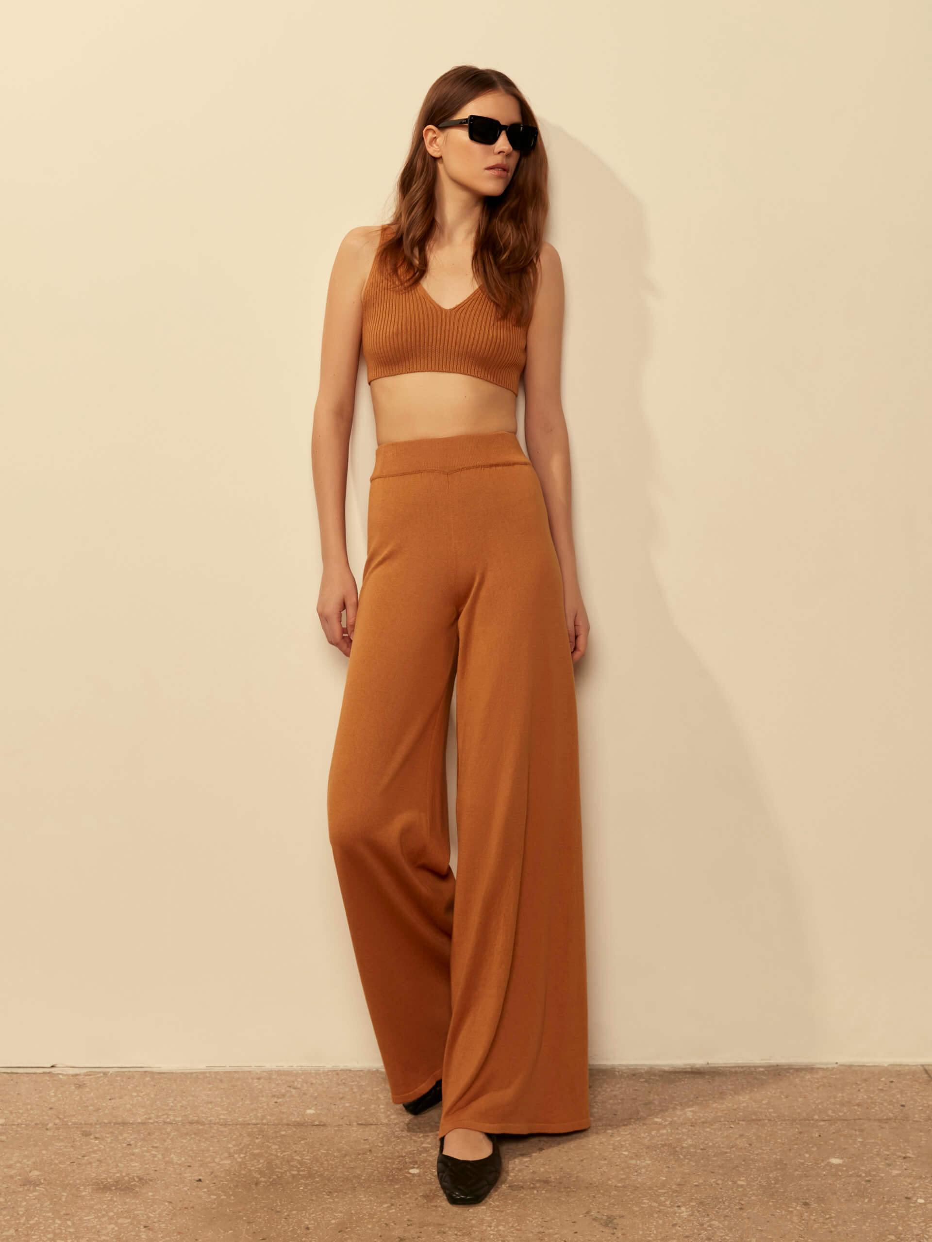Брюки вільного крою з завищеною талією. Пояс еластичний.
