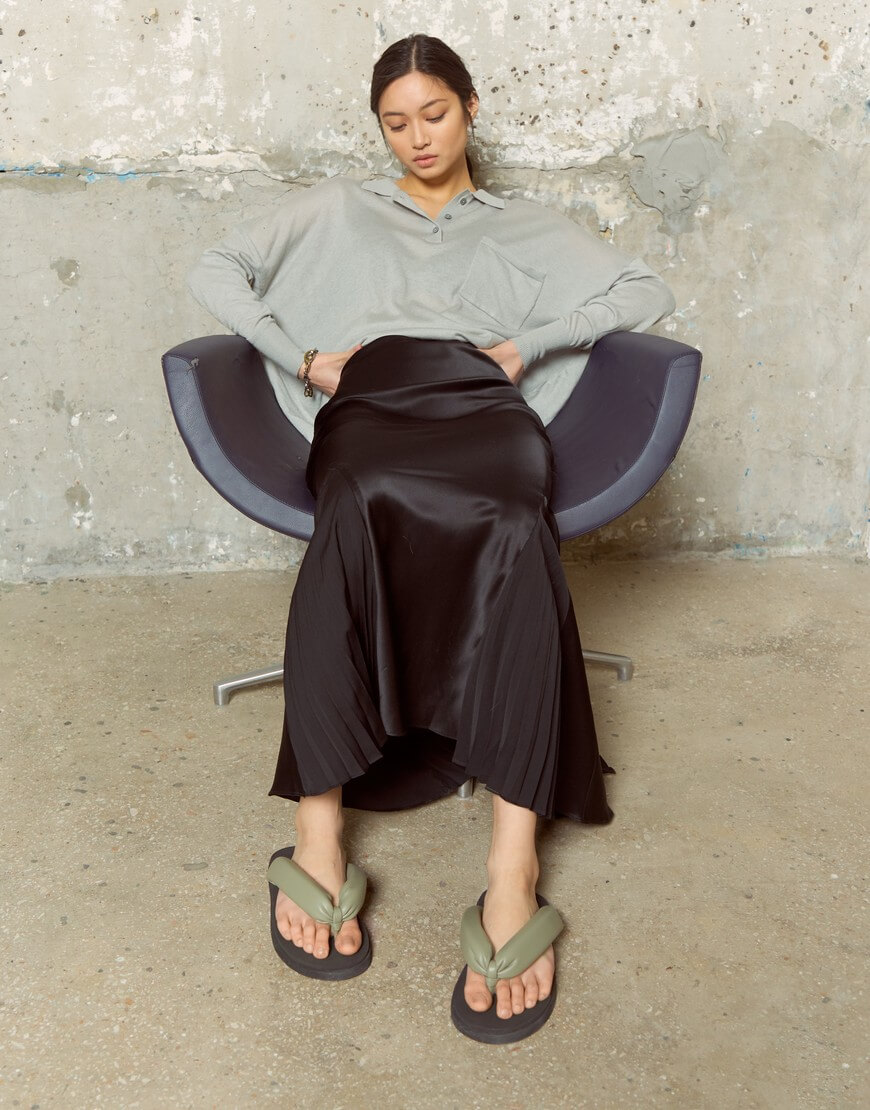 Доставка впродовж 2-5 робочих днівВ’єтнамки м’ятного кольору з дутими ременями, на легкій платформі з EVA чорного кольору, з гіпоалергенною устілкою з EVA.