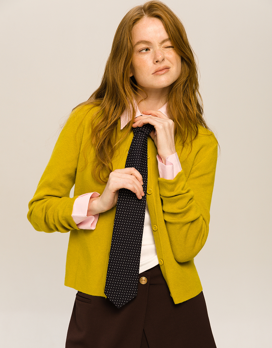 Темно-синя краватка з голубим дрібним горохом поєднує в собі елегантність і незалежність. Вона легко вписується в будь-який стиль — від офісного мінімалізму до стріт-кежуал. Її носять не за правилами, а за відчуттями.