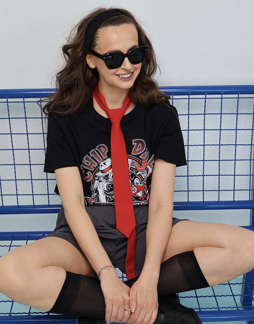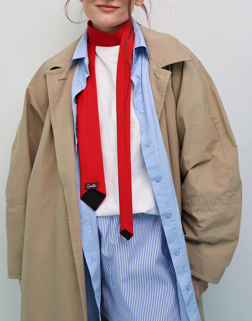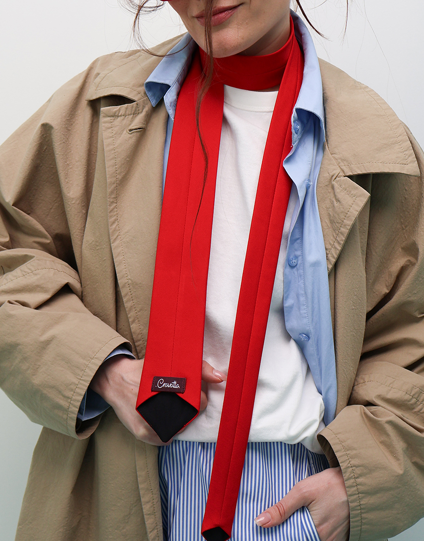 Краватка Слім Жіноча червоного кольору з чорними вставками.