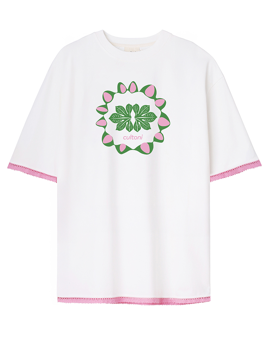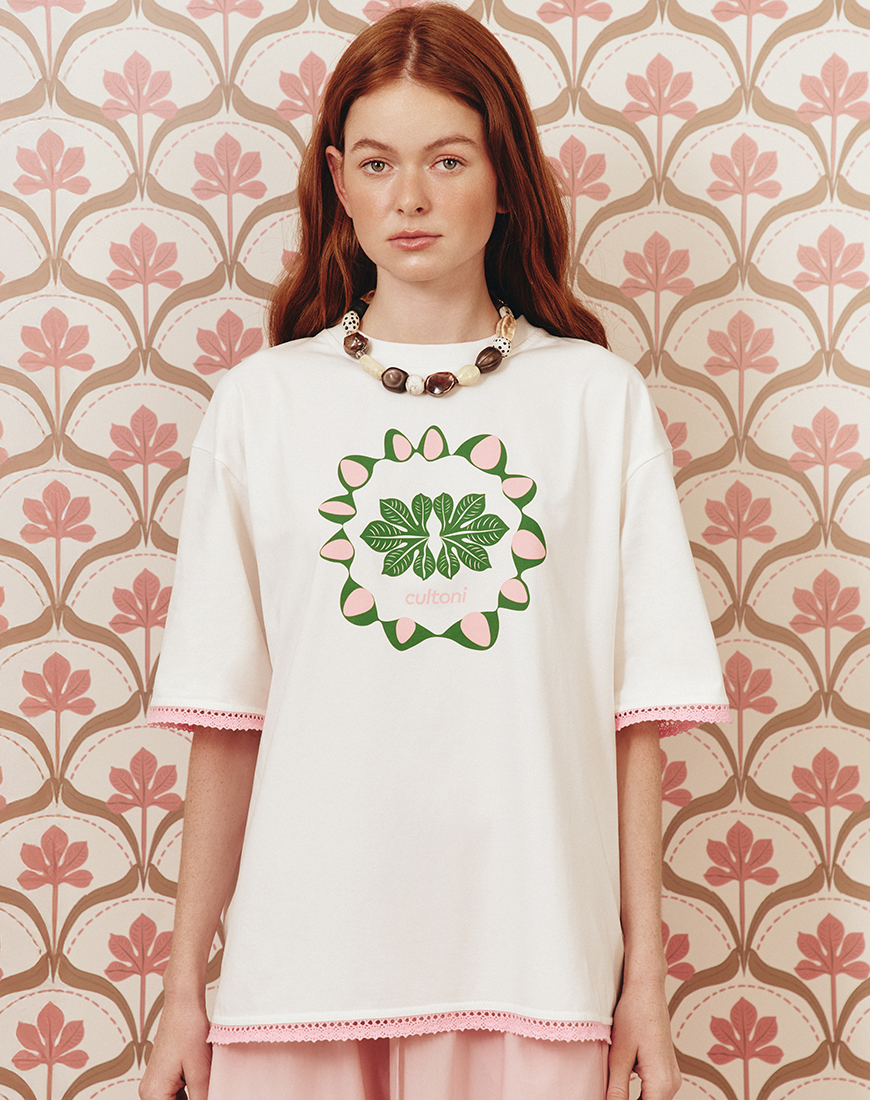 Футболка з натуральної бавовни з принтом листя каштана. М’яка, зручна й дихаюча тканина забезпечує комфорт у повсякденному носінні. Ідеальний базовий варіант для дому та відпочинку.