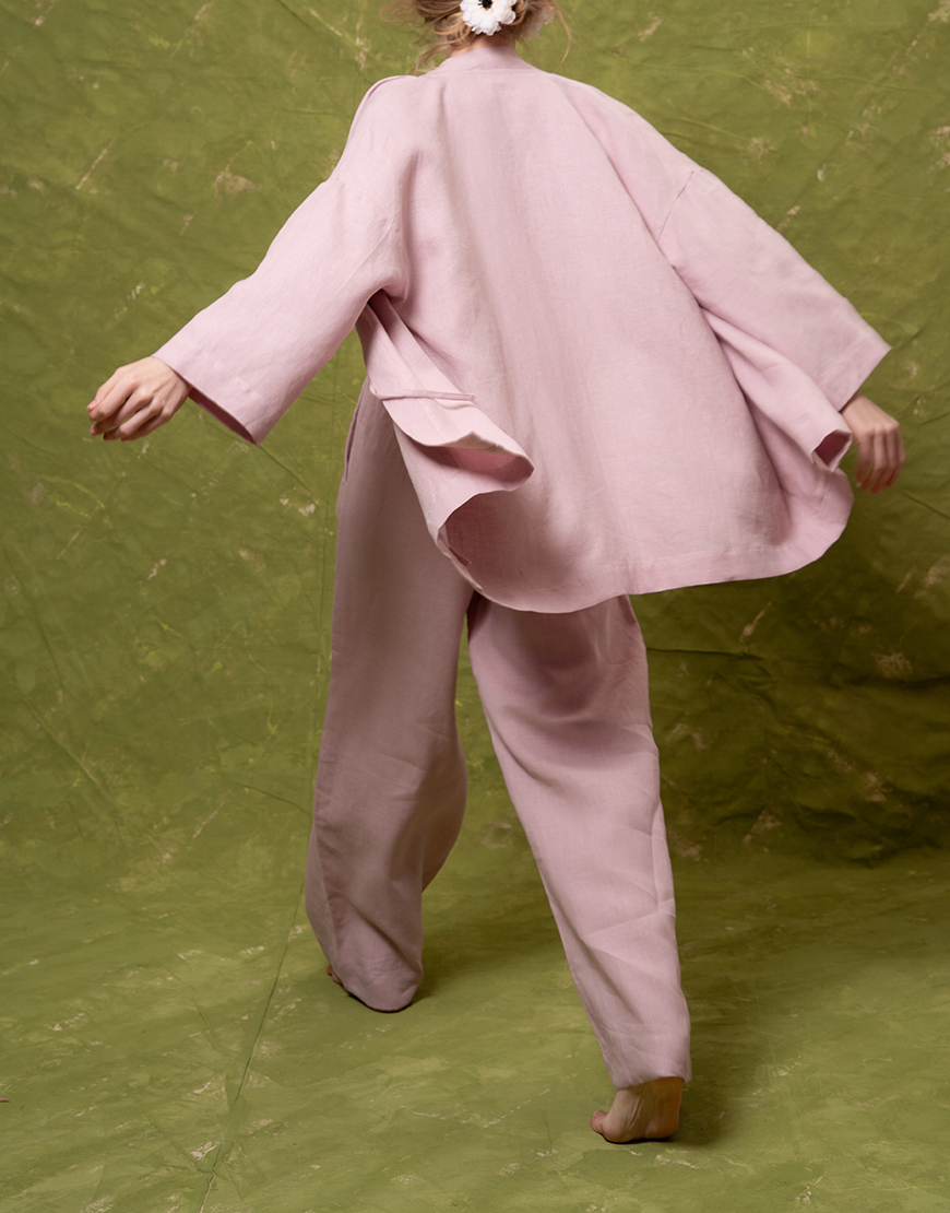 Лляний костюм з палаццо та кімоно