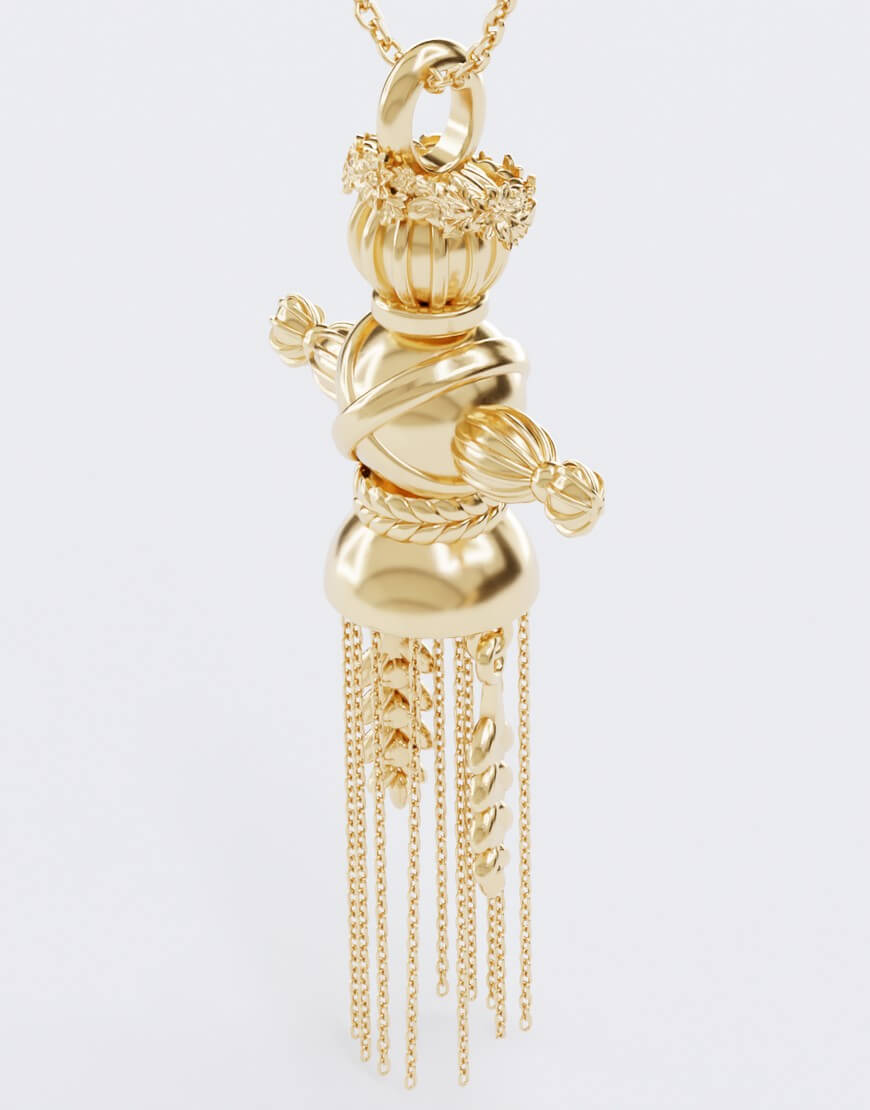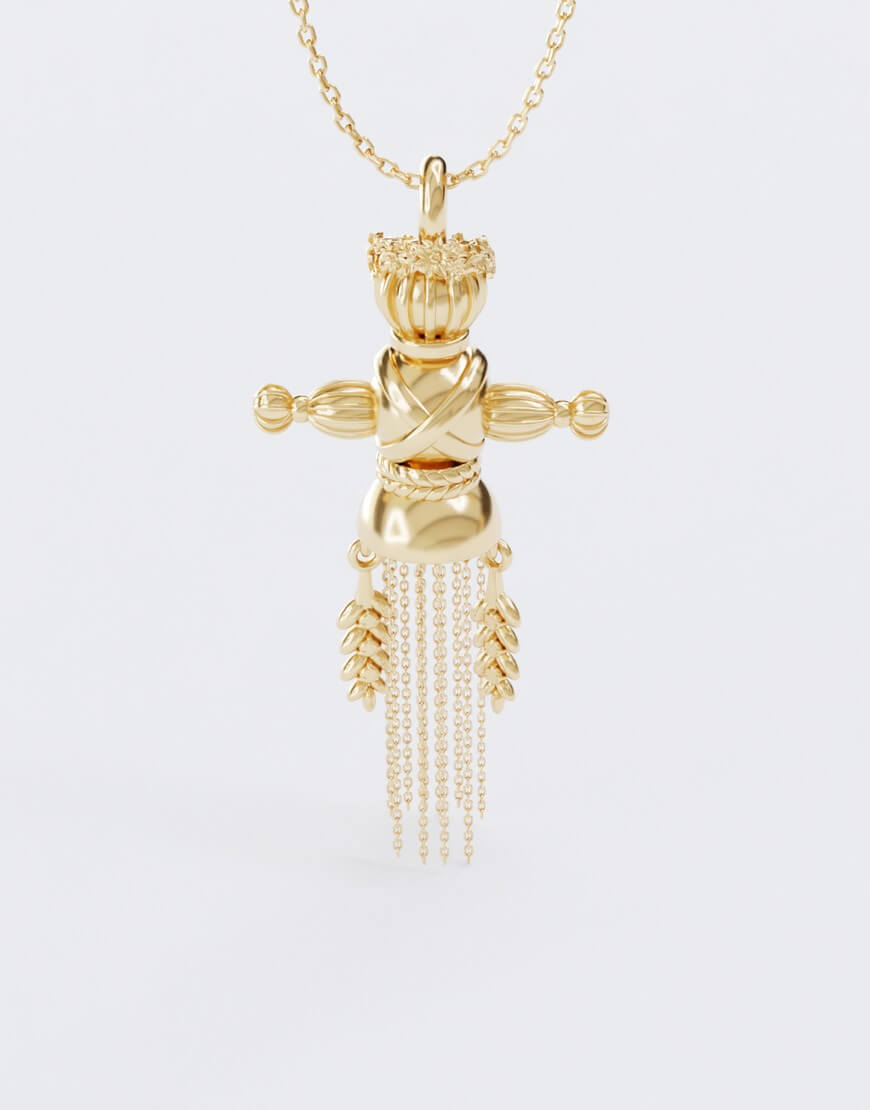 Підвіска складається з 18 деталей, кожна із яких з’єднується вручну. Голова ляльки прикрашена вінком – обов’язковим атрибутом весняних та літніх обрядових свят та ритуалів.