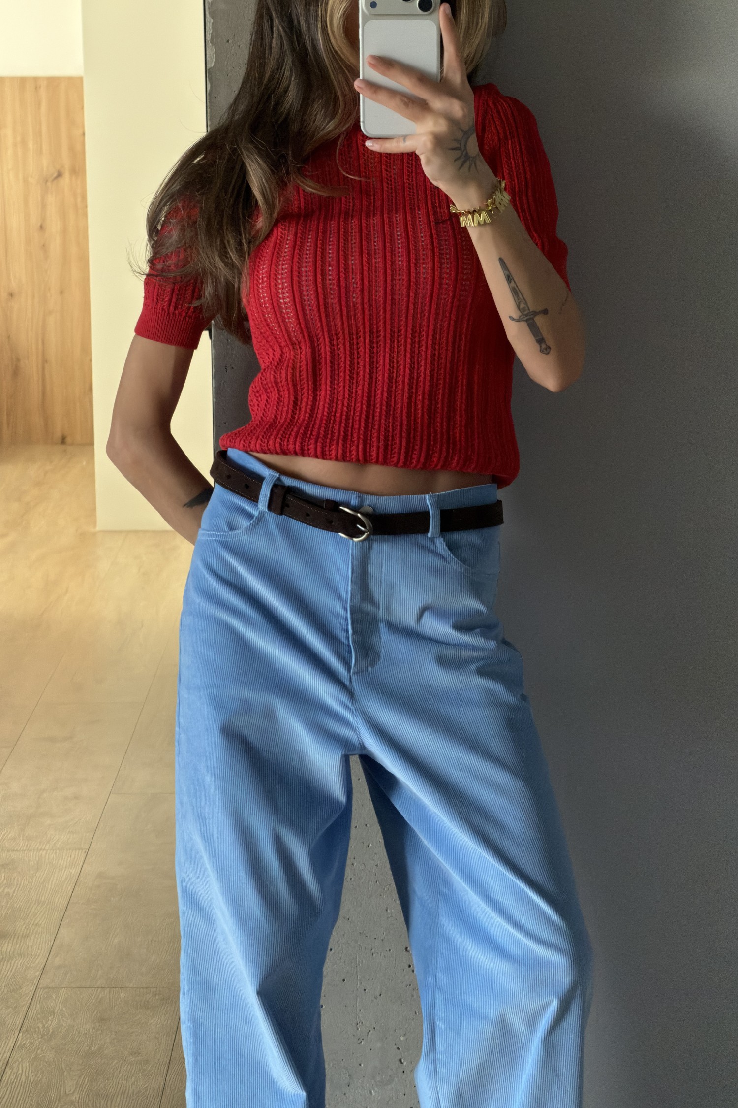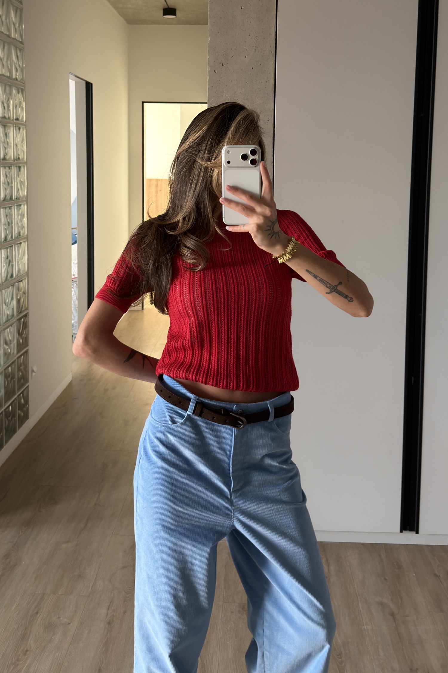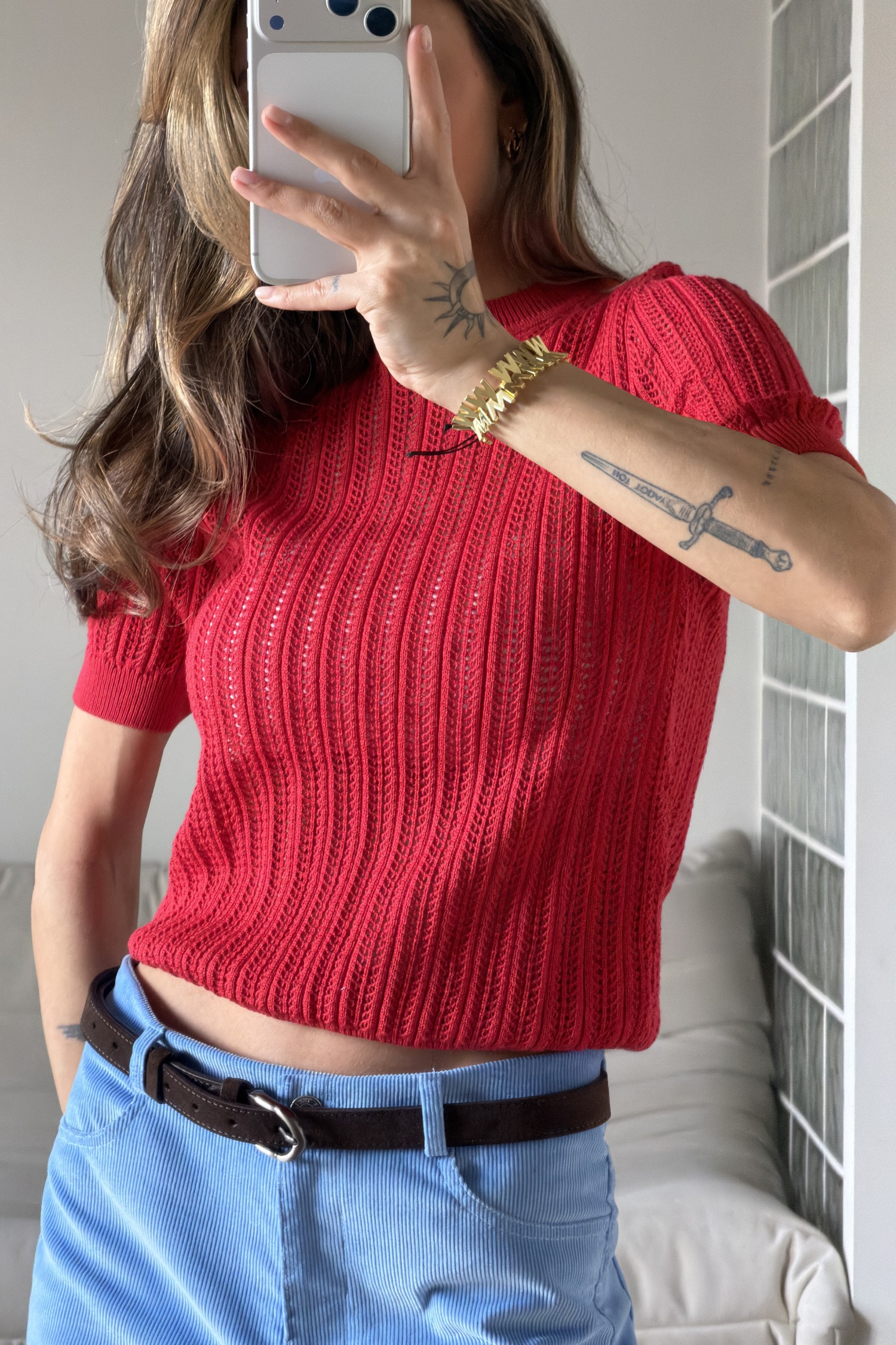 Джемпер ажурної в’язки червоний