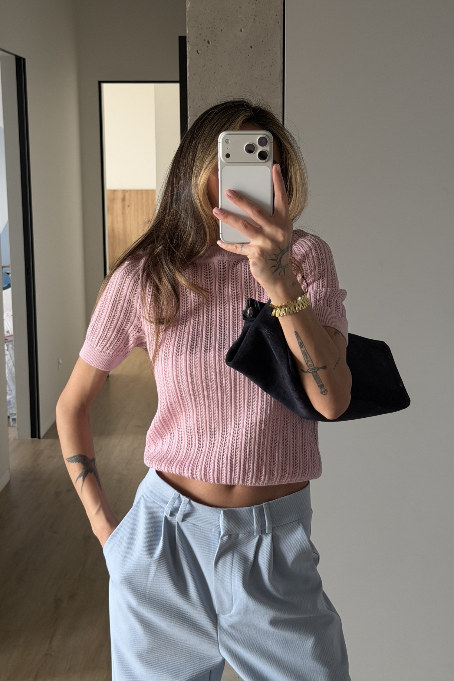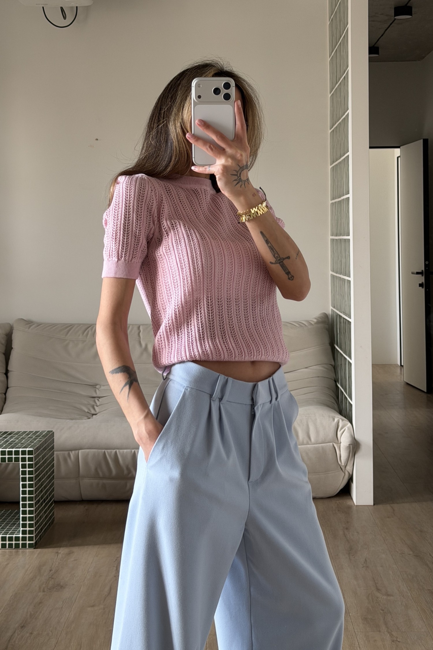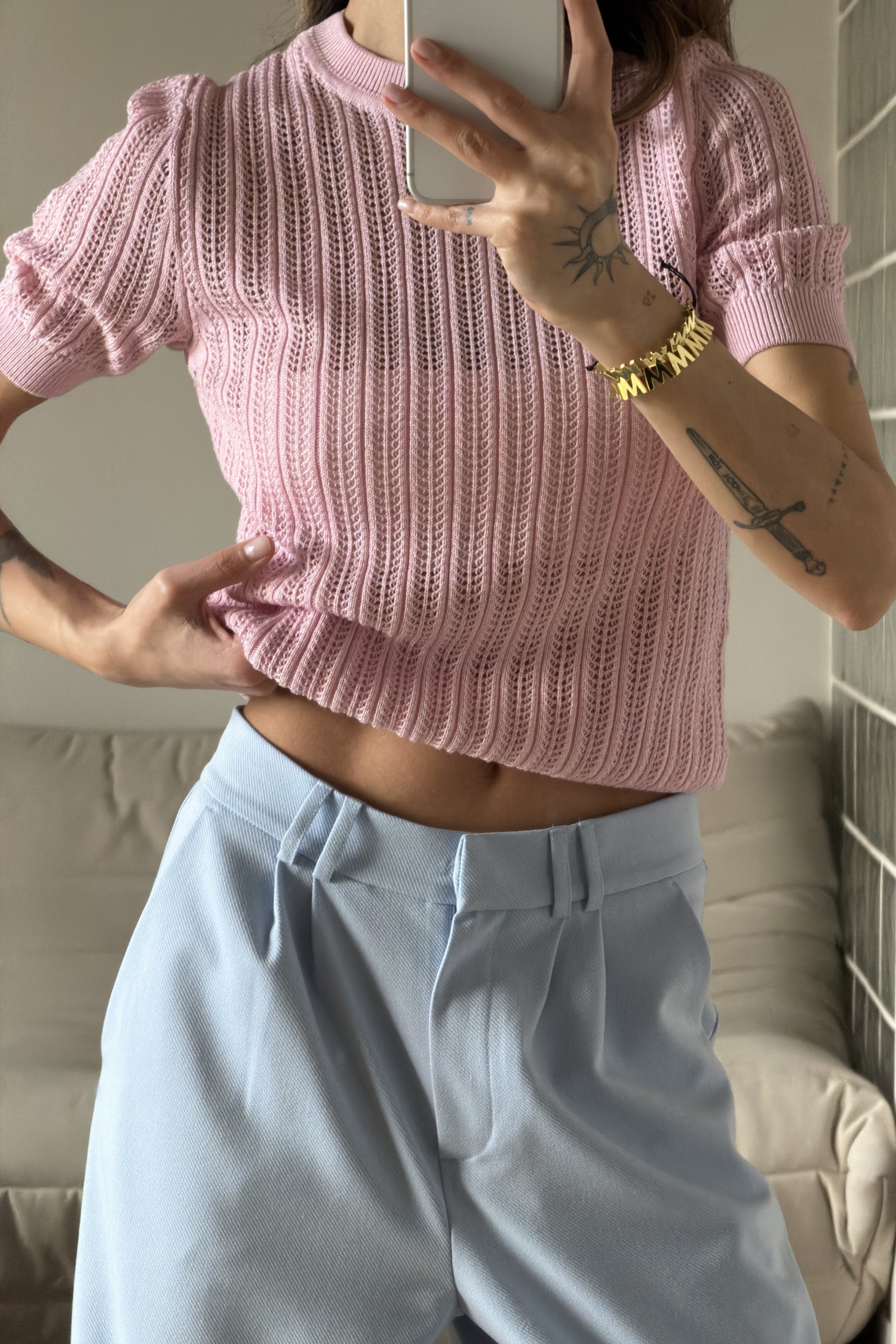 Джемпер ажурної в’язки рожевий
