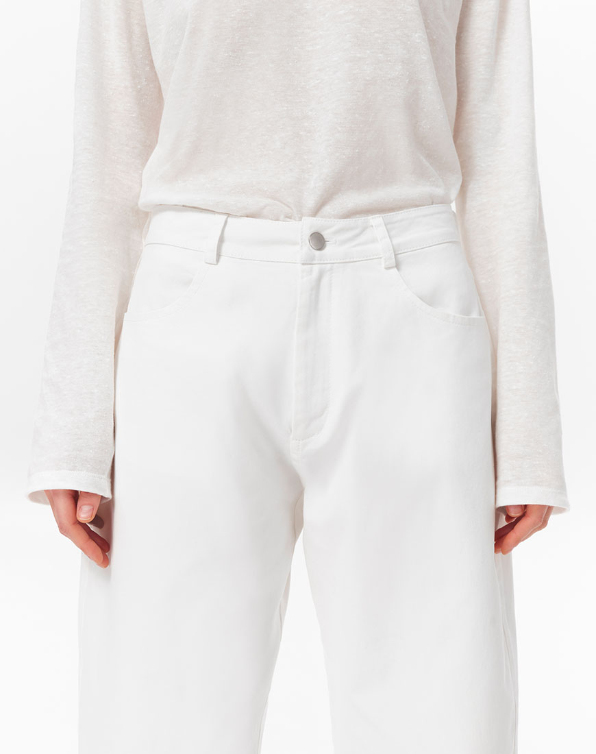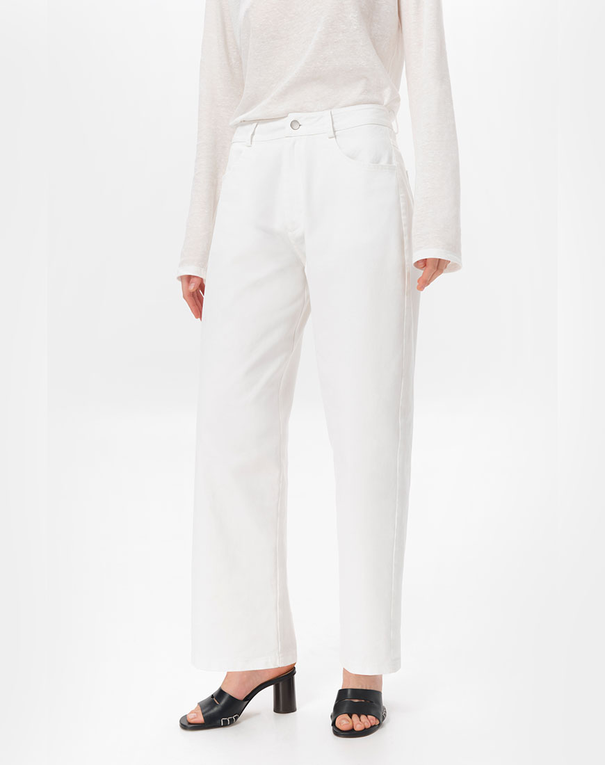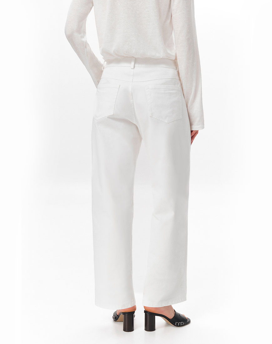 Джинси зі 100% бавовни вільного крою. Середня посадка. Класична застібка на ґудзик і блискавку. Традиційна конструкція з п’ятьма кишенями. Базова модель, яка легко поєднується як зі спортивними куртками, так і з класичними жакетами або легкими блузами.