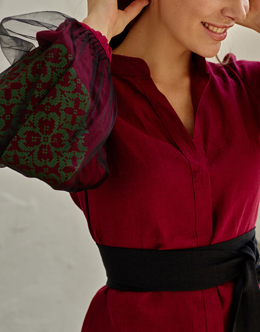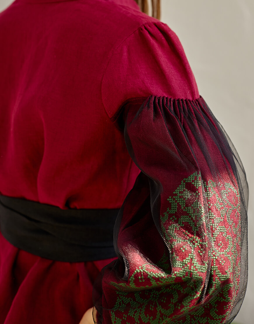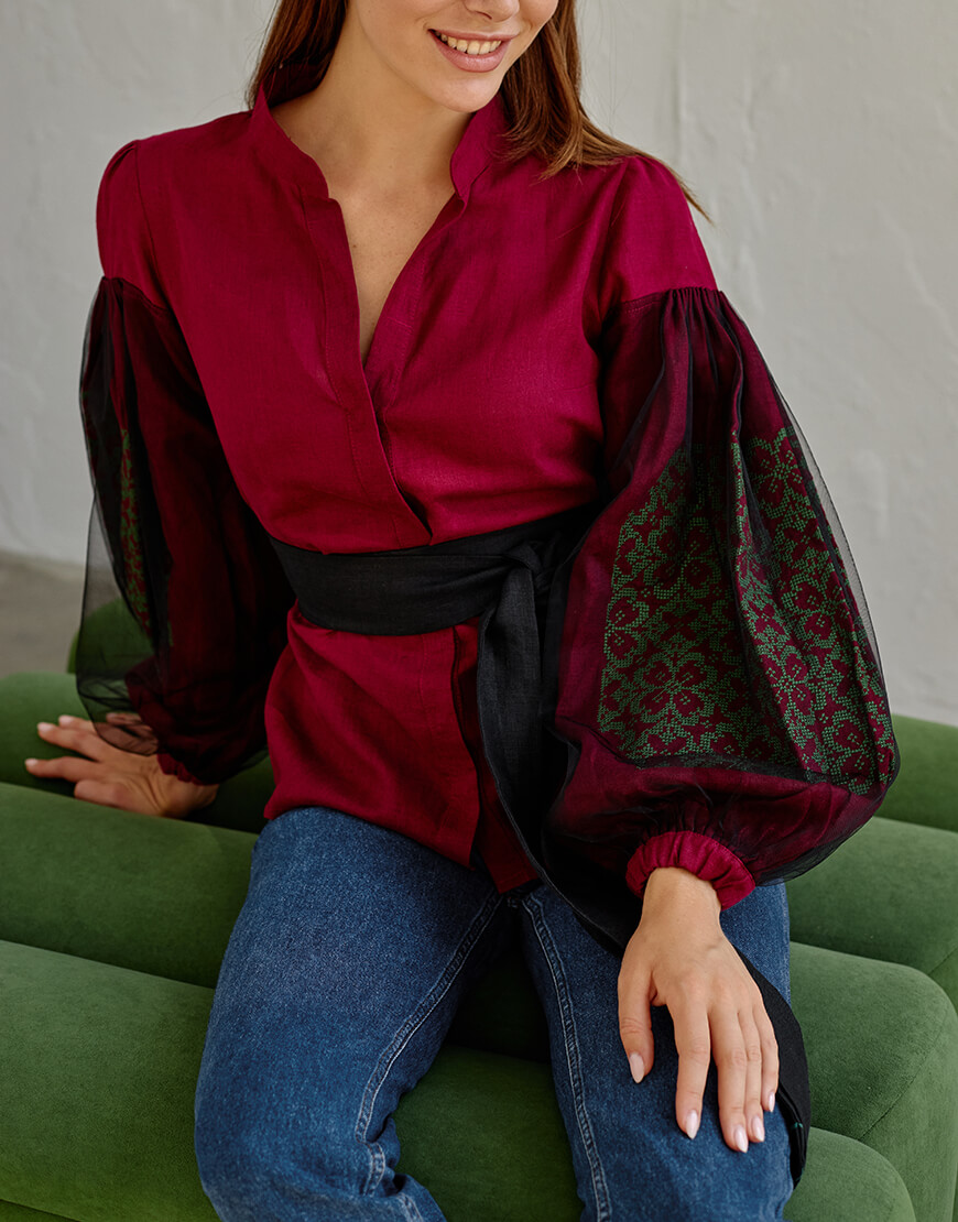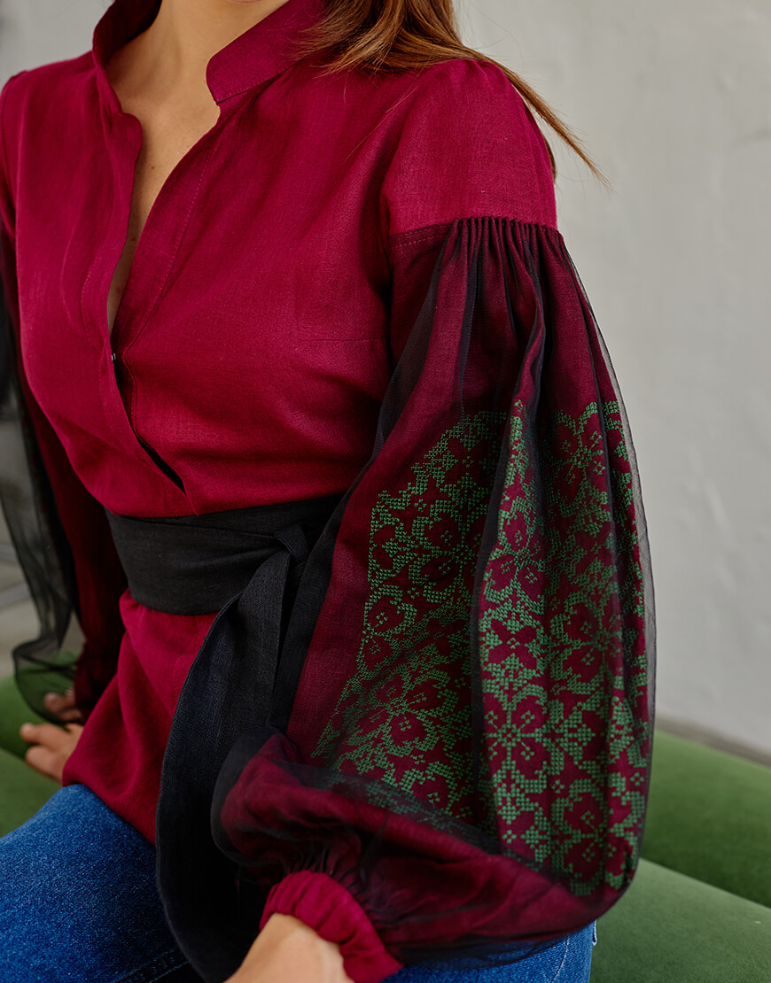 Блуза з рукавом сітка зелена вишивка