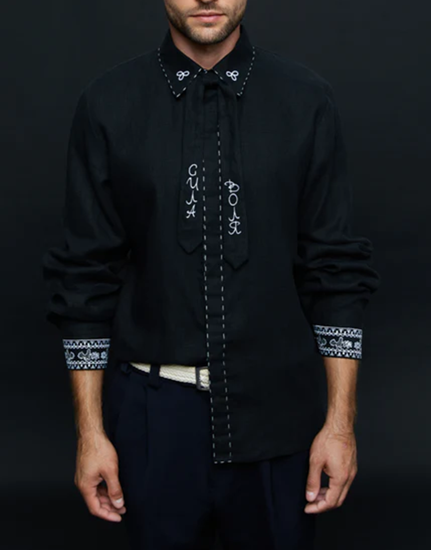 Мінімалістична вишивка на комірцях та рукавах створюють додаткові акценти.
