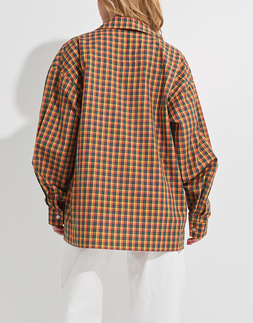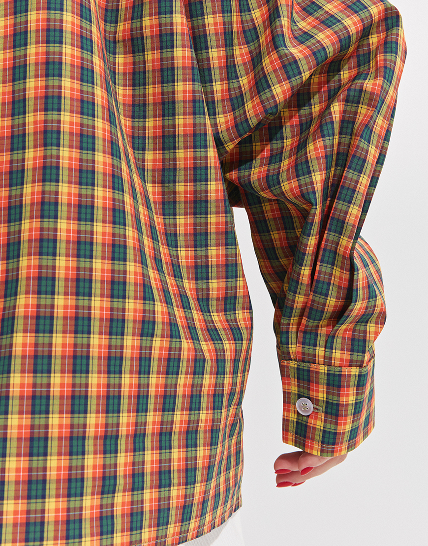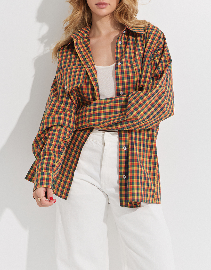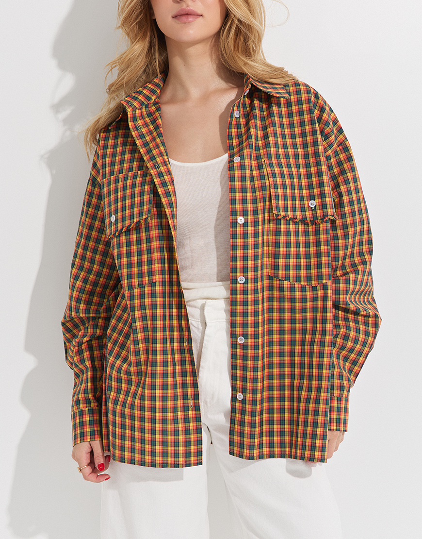 Ця яскрава помаранчева сорочка є основнім елементом поточної колекції Theessence. Модель виготовлена з м’якої бавовни, має вільний фасон, гострий комір та накладні кишені на грудях.
