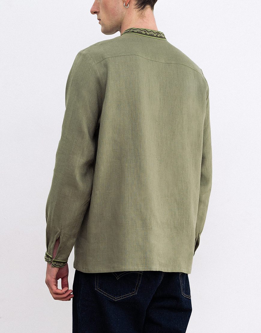 Доставка протягом 2-5 робочих днівПряма сорочка з коміром стійкою, спереду розріз з застібкою на кнопку.