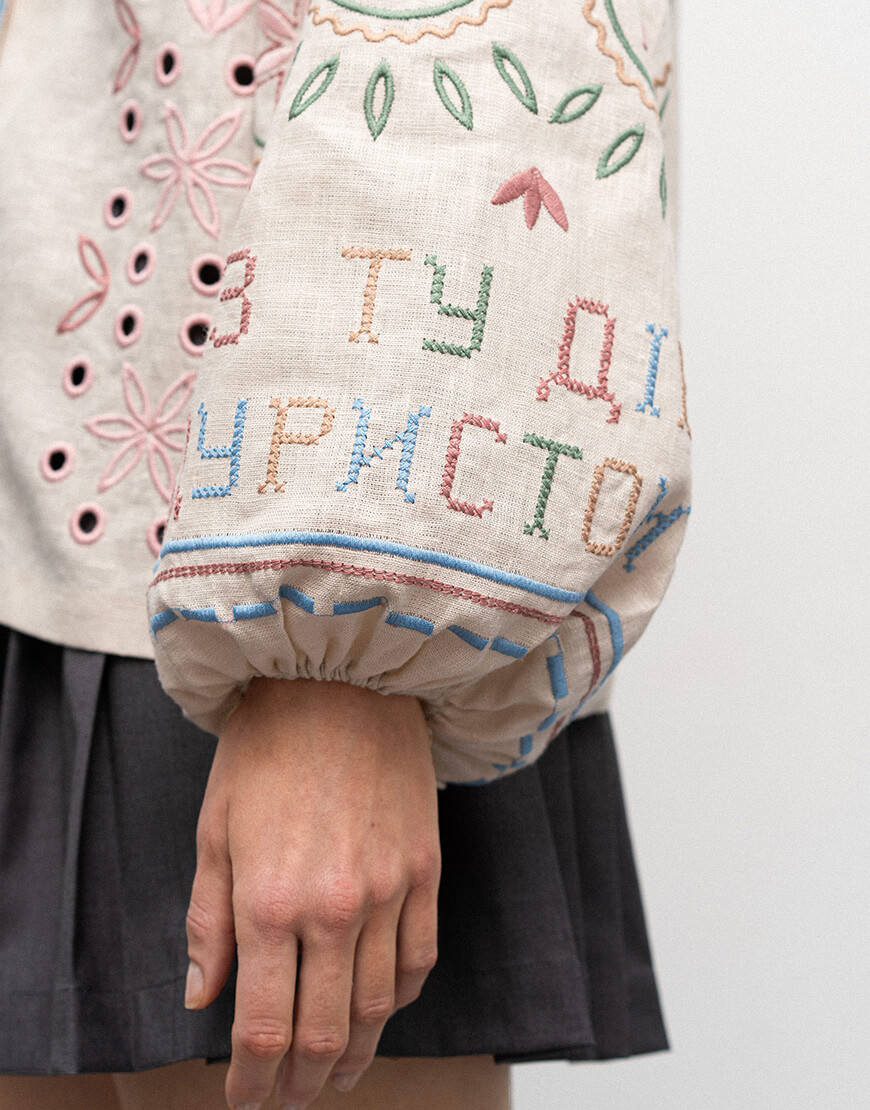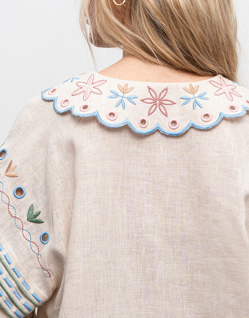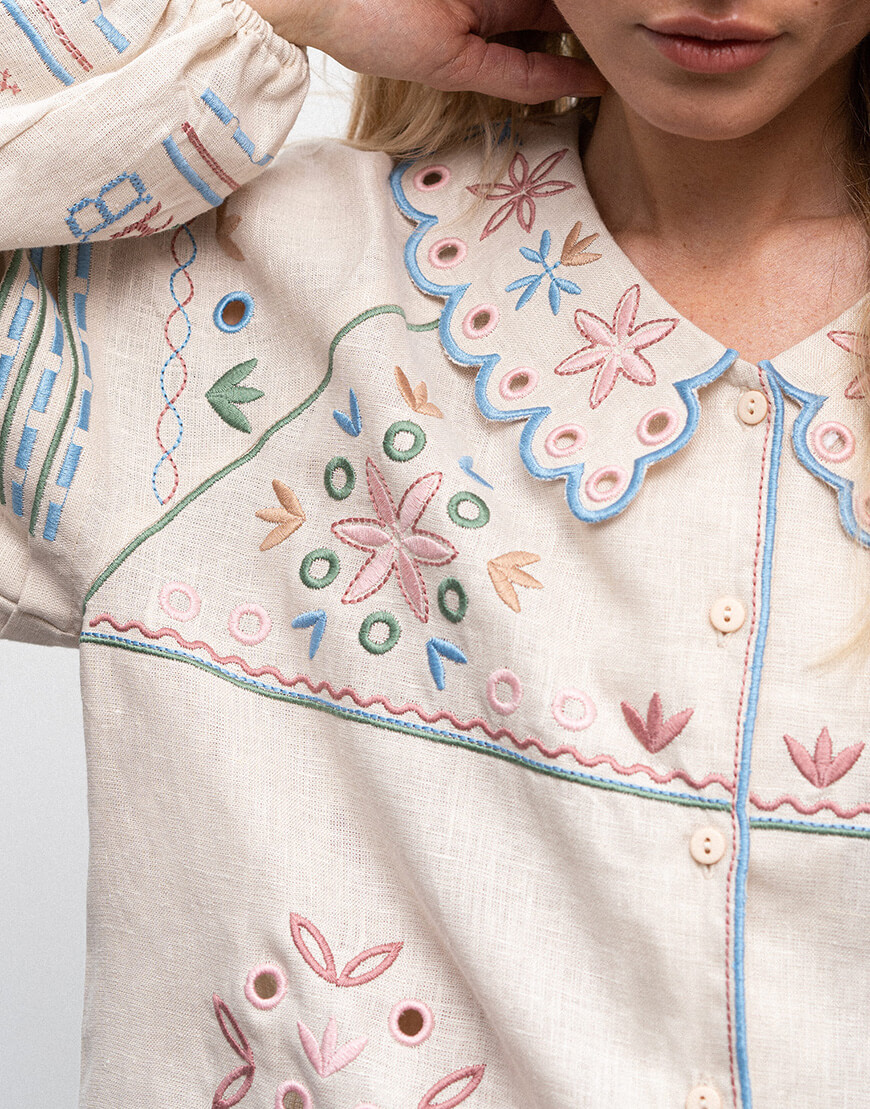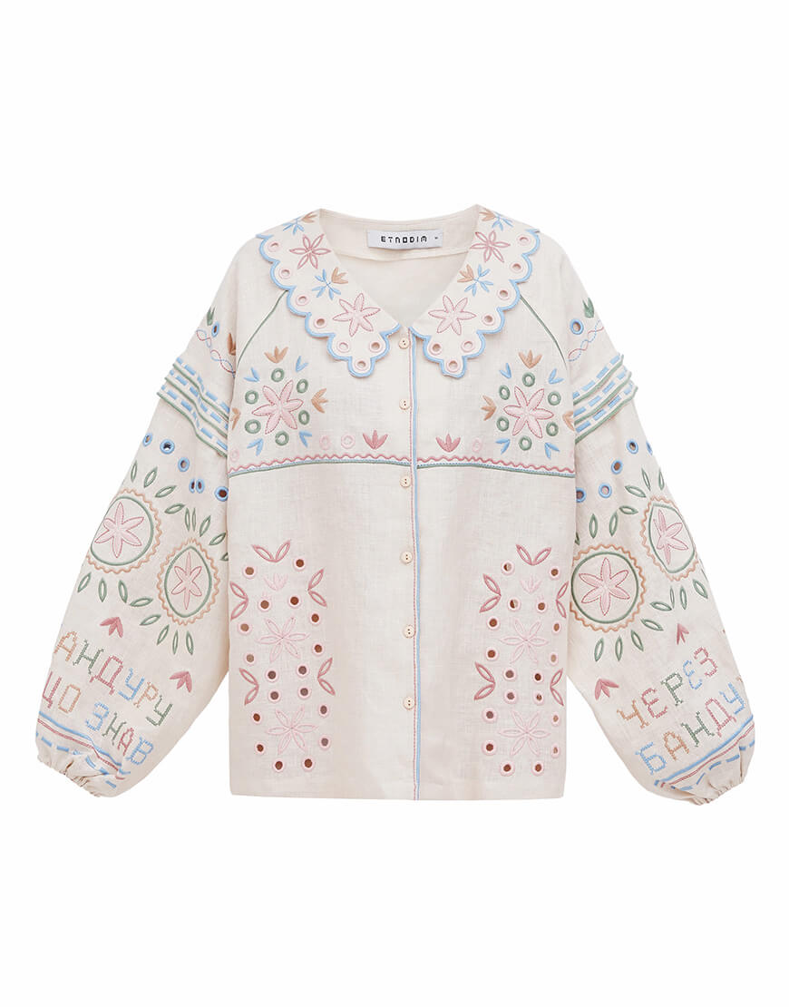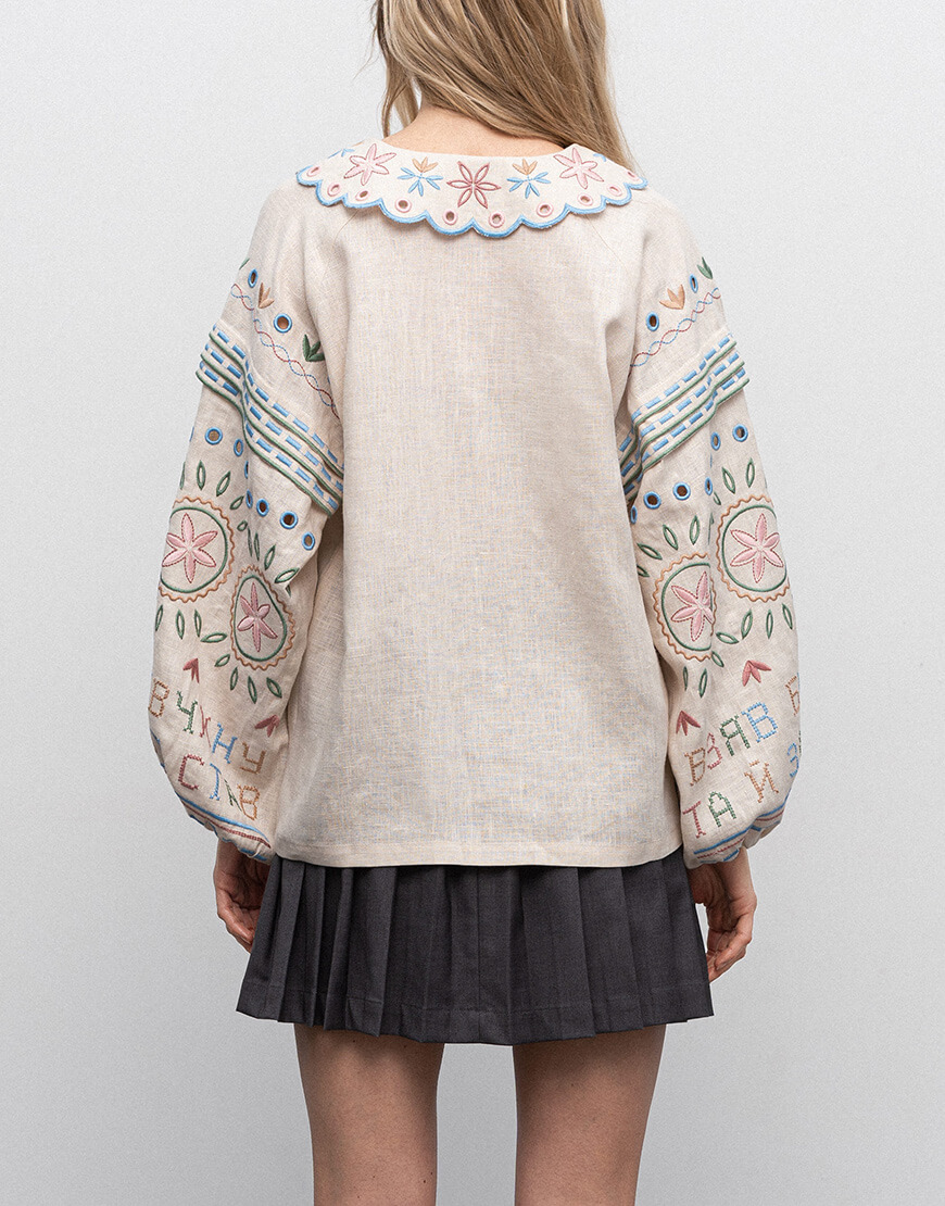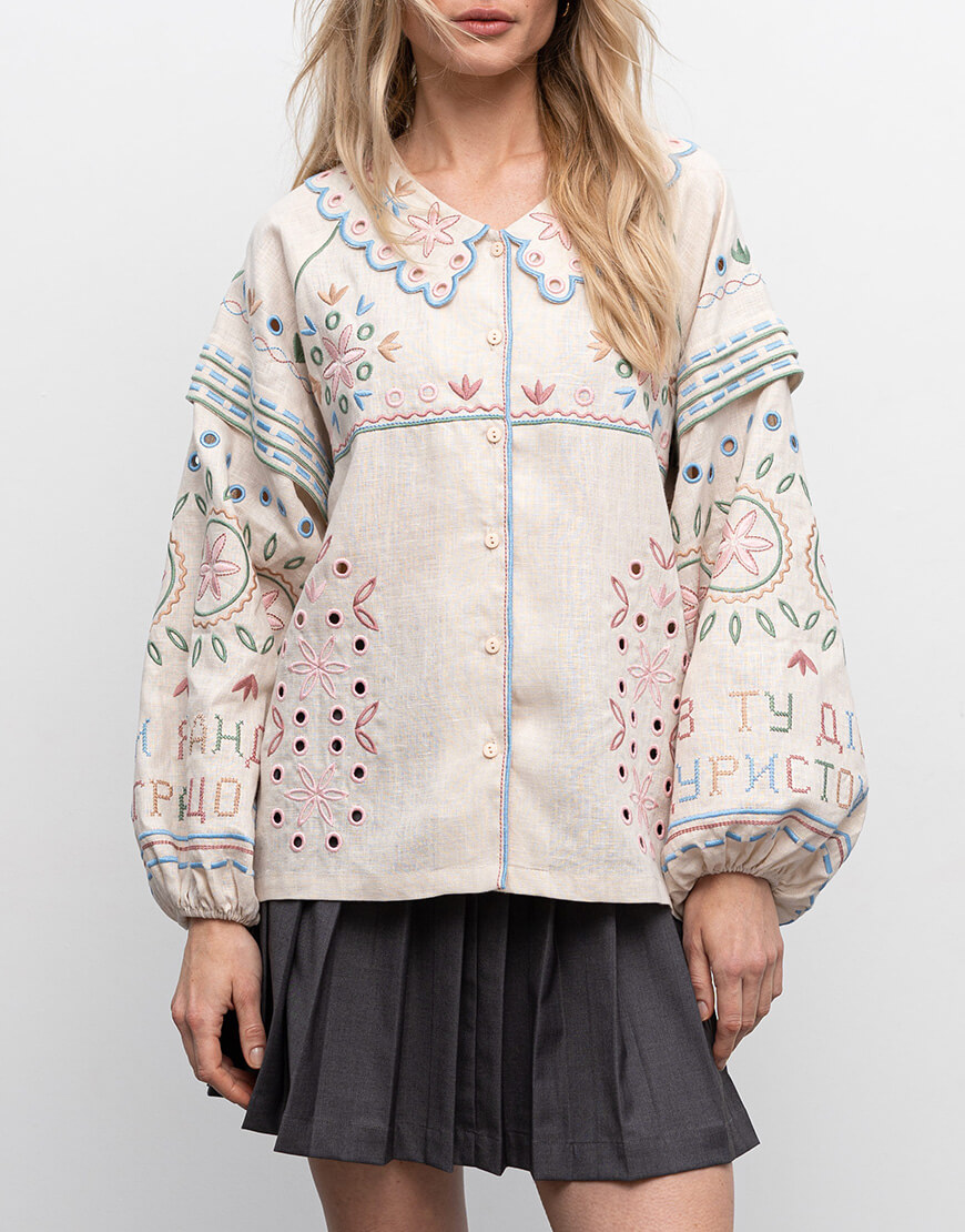 зібраний на резинку. Центральна застібка на 6 ґудзиків.