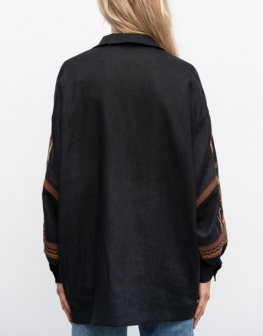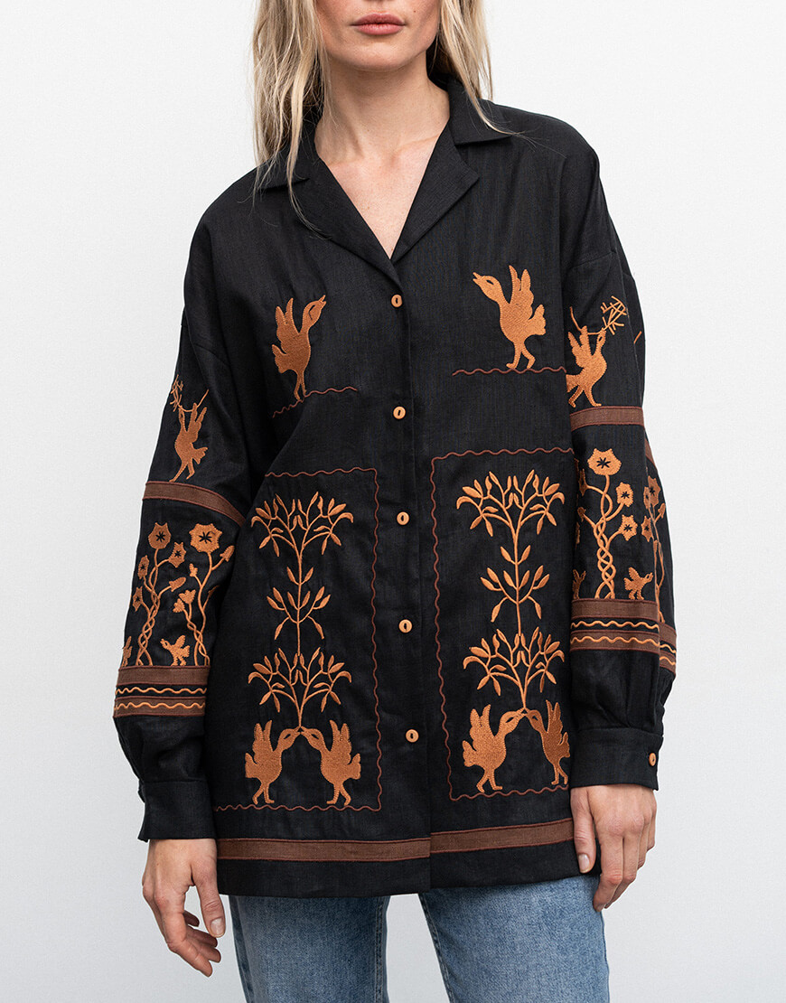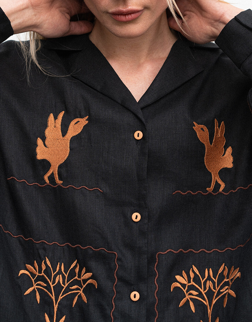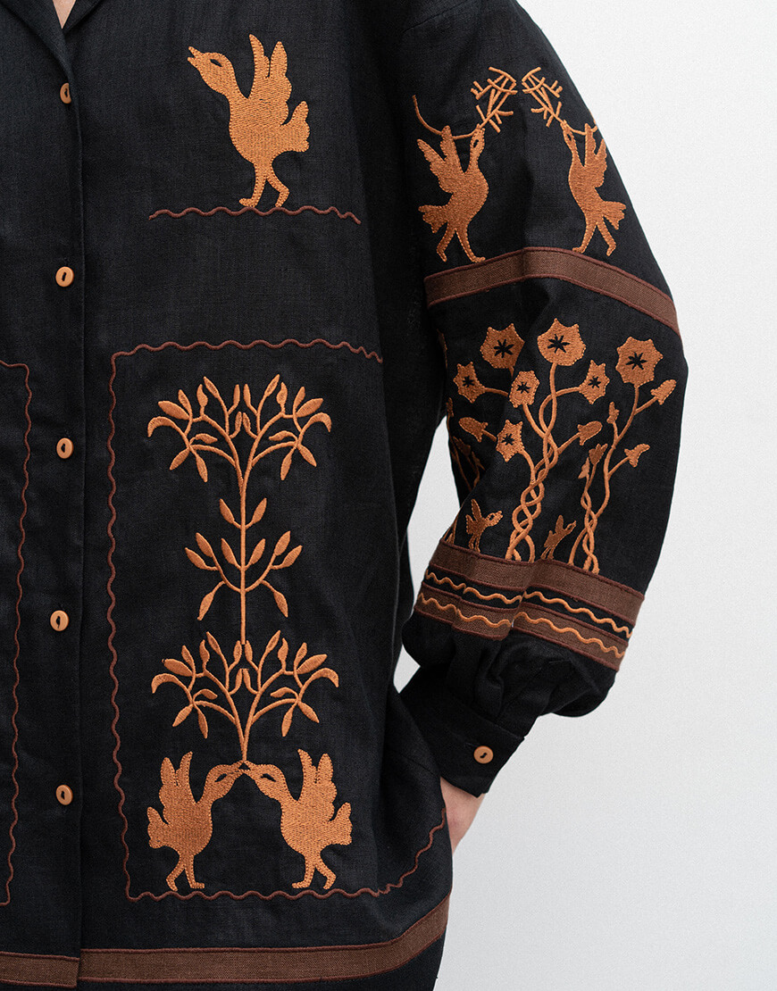Рукава і передня частина сорочки оздоблені вишивкою.