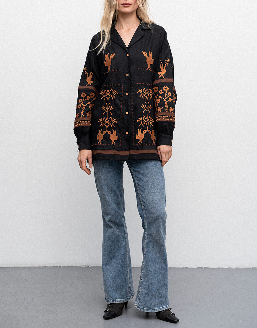 Доставка протягом 2-5 робочих днівСорочка вільного крою. Має довгий втачний рукав зі спущеним плечем.