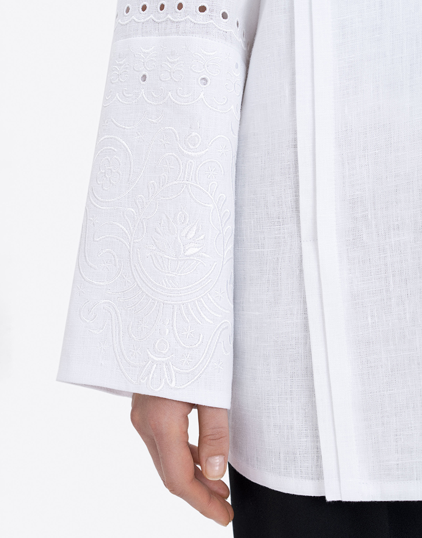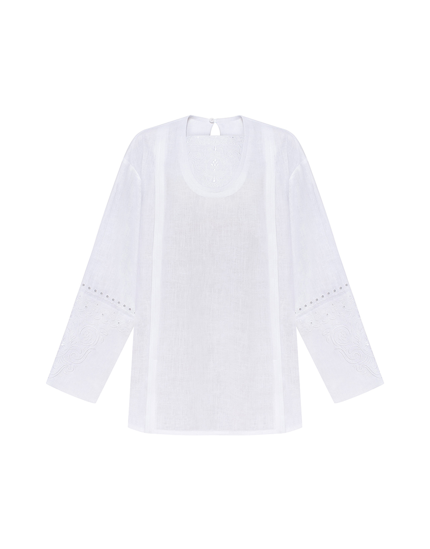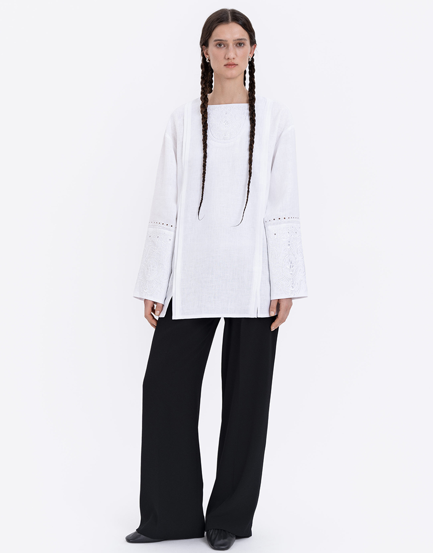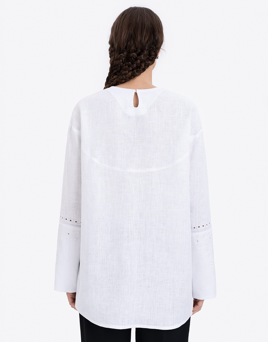 Доставка протягом 2-5 робочих днівЛляна блуза оверсайз силуету, розшита білим по білому.