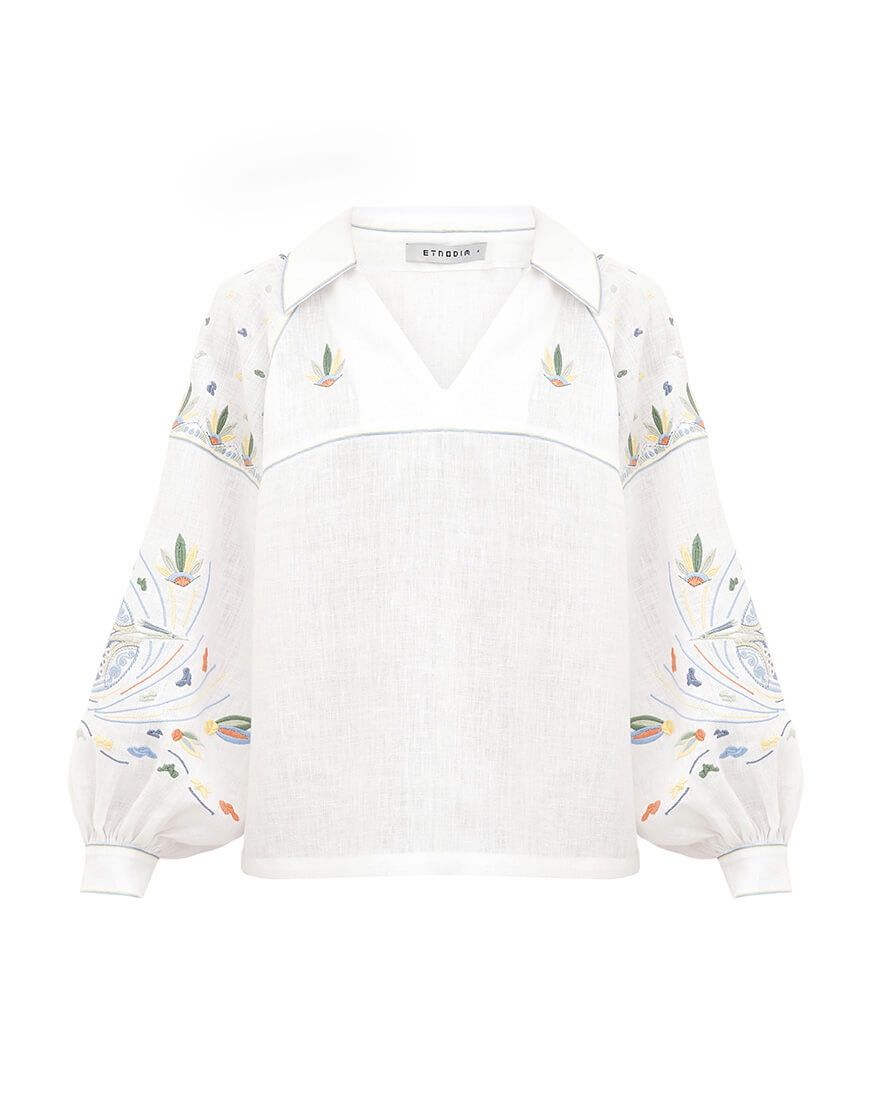 Вишиванка білого кольору з барвистою вишивкою Боривітер