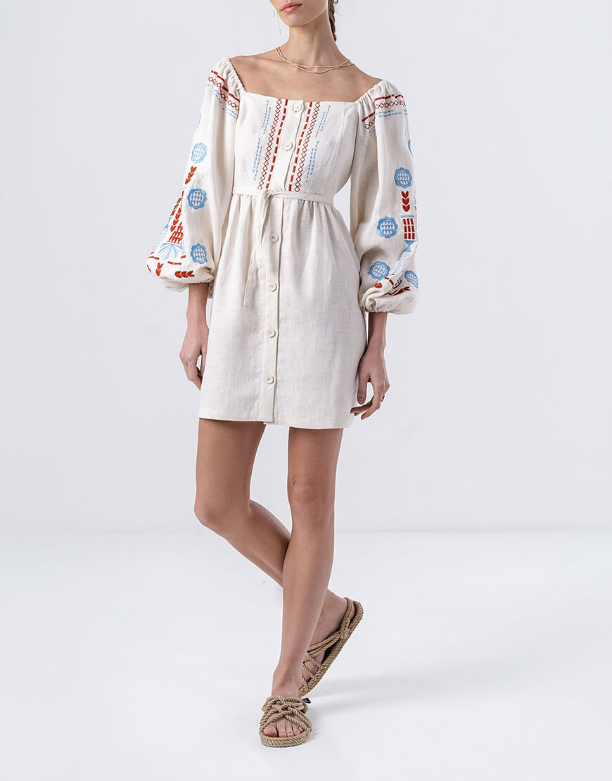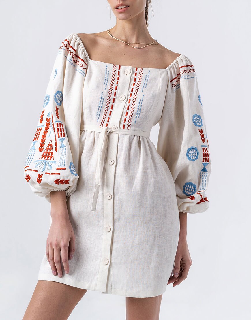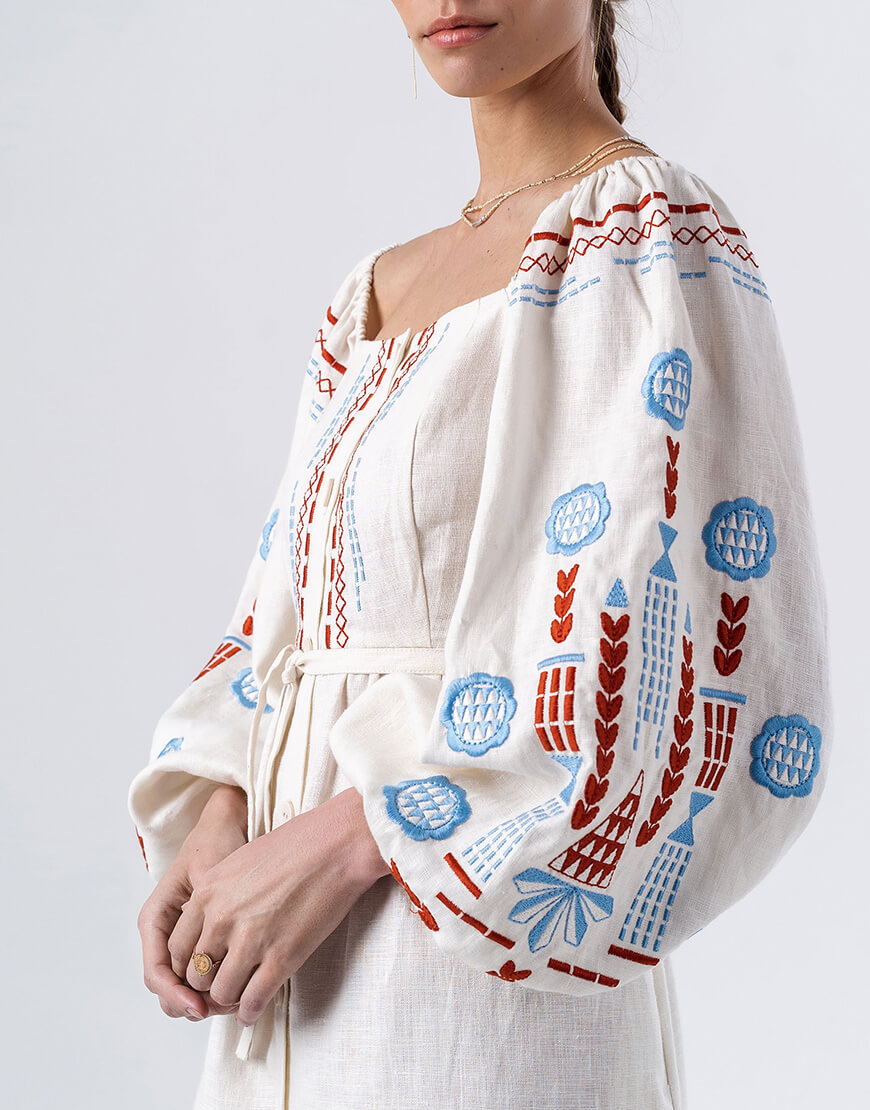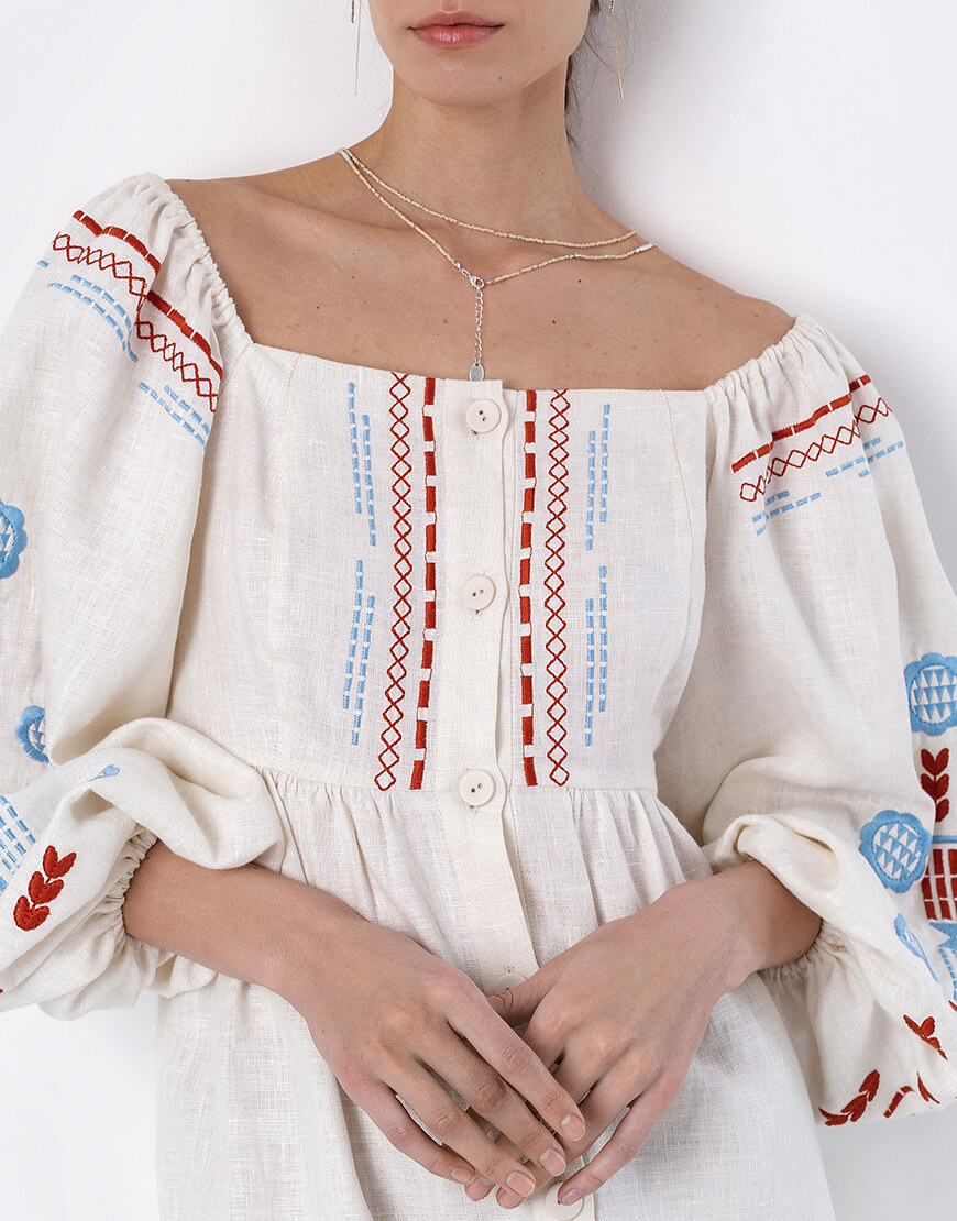 Лляна сукня з вишивкою молочного кольору Mozaika