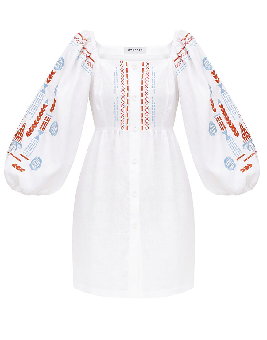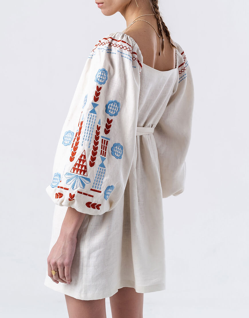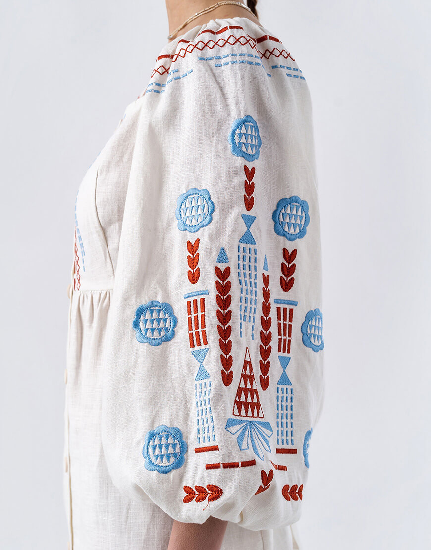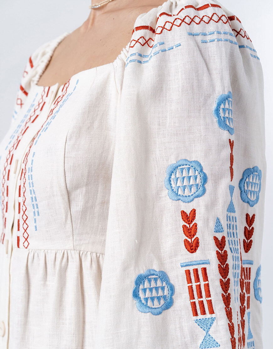 Лляна сукня з вишивкою молочного кольору Mozaika
