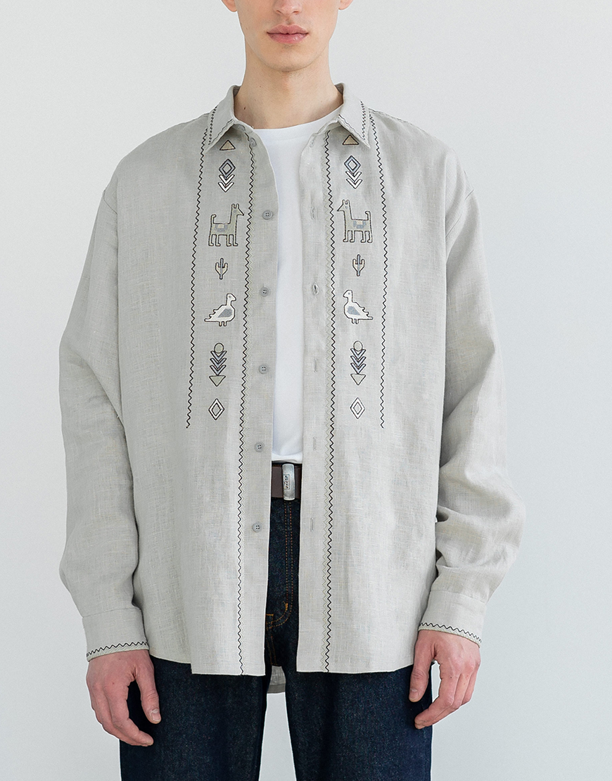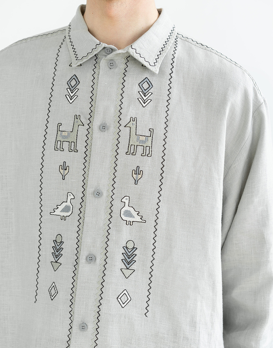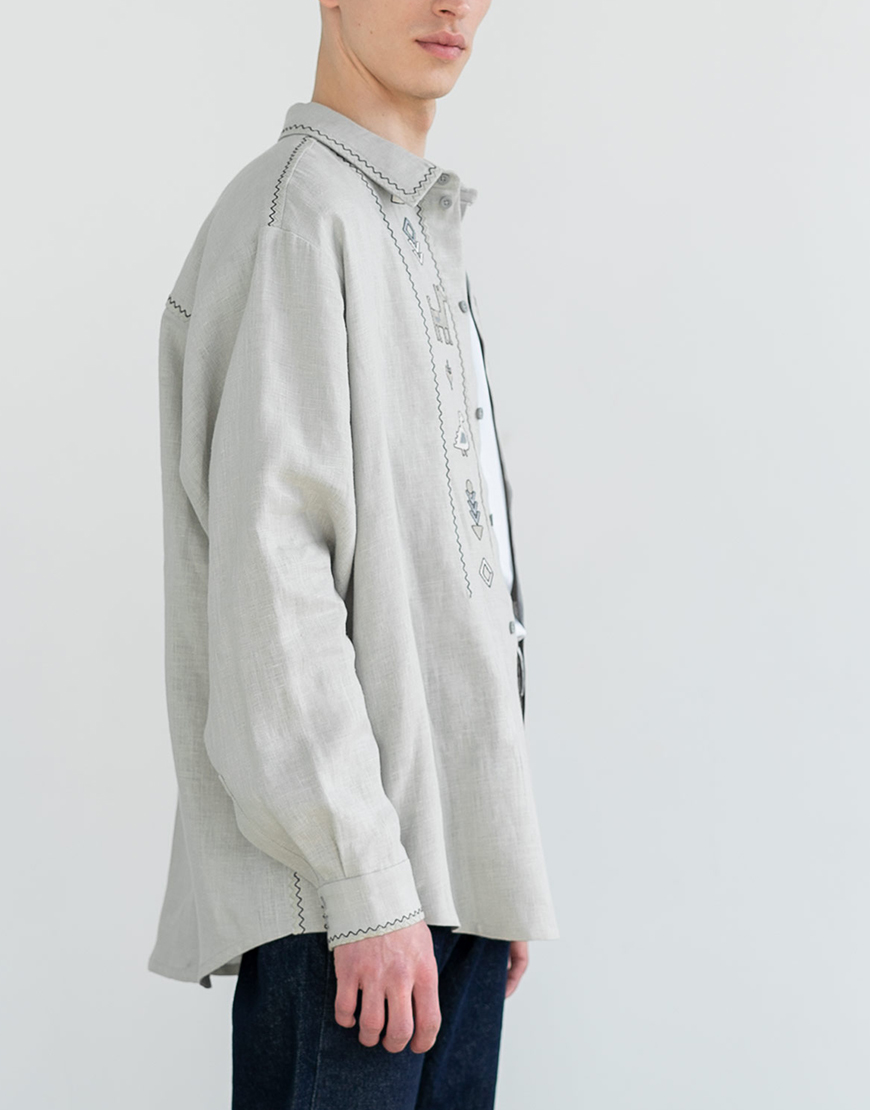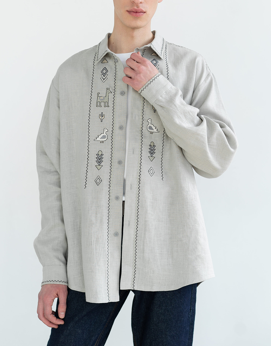 Лляна сорочка на ґудзиках з вишивкою Pastukh