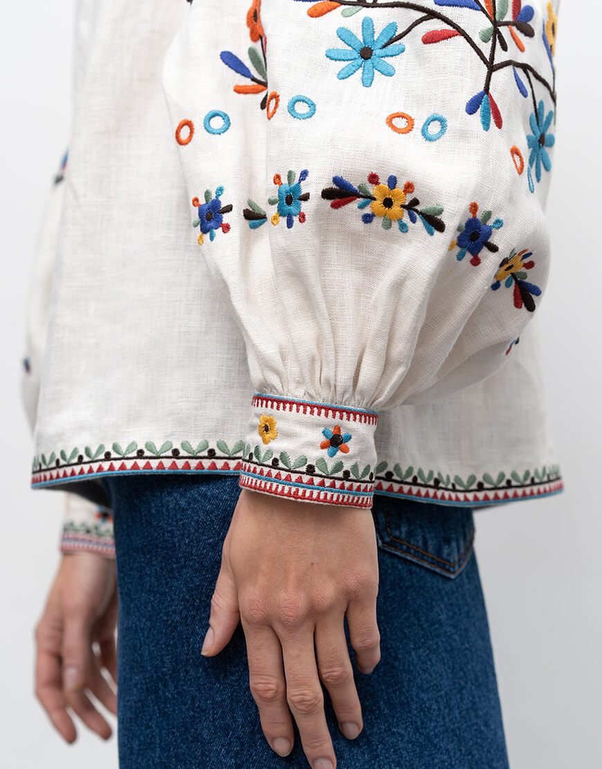 Низ рукавів збираються на широкі манжети та застібаються на ґудзики.