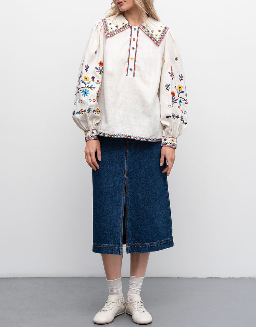 Вишита лляна сорочка з яворівським орнаментом Yavir
