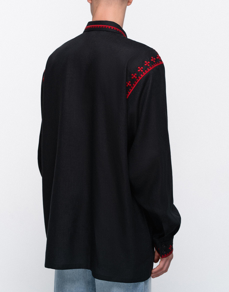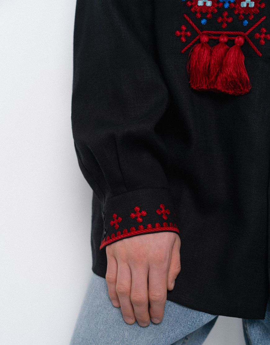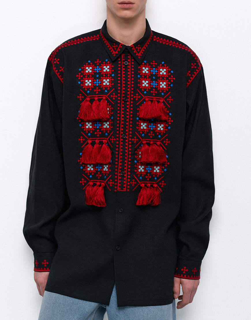 Чоловіча вишита сорочка з коміром та масивними китицями Земля