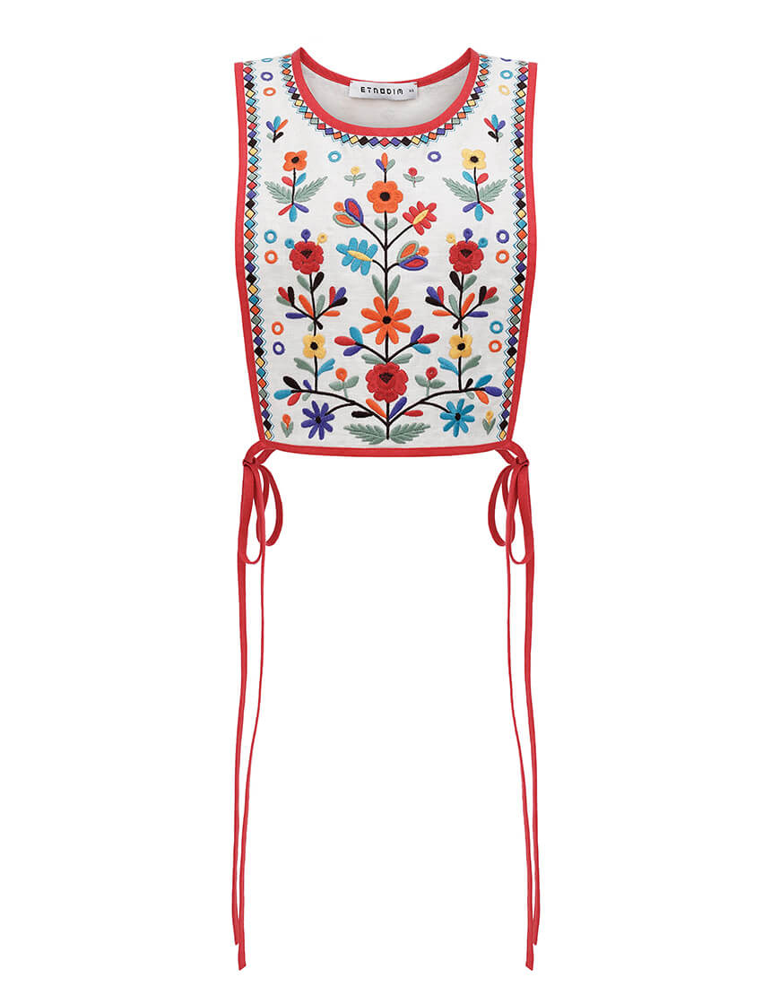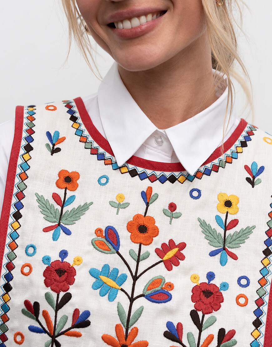 Лляний вишитий жилет із зав’язками Yaryna zhylet