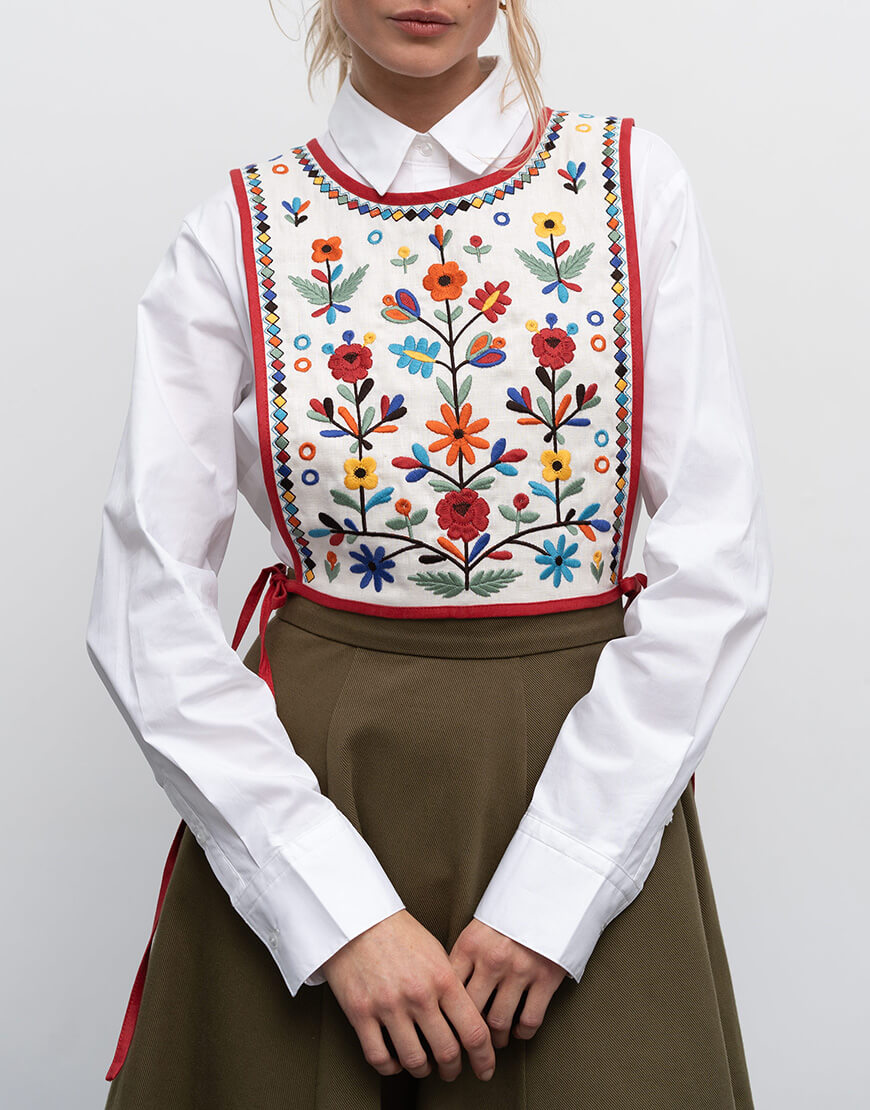 Доставка протягом 2-5 робочих днівДекоративна жилетка-накидка, пілочка та спинка оздоблена вишивкою.