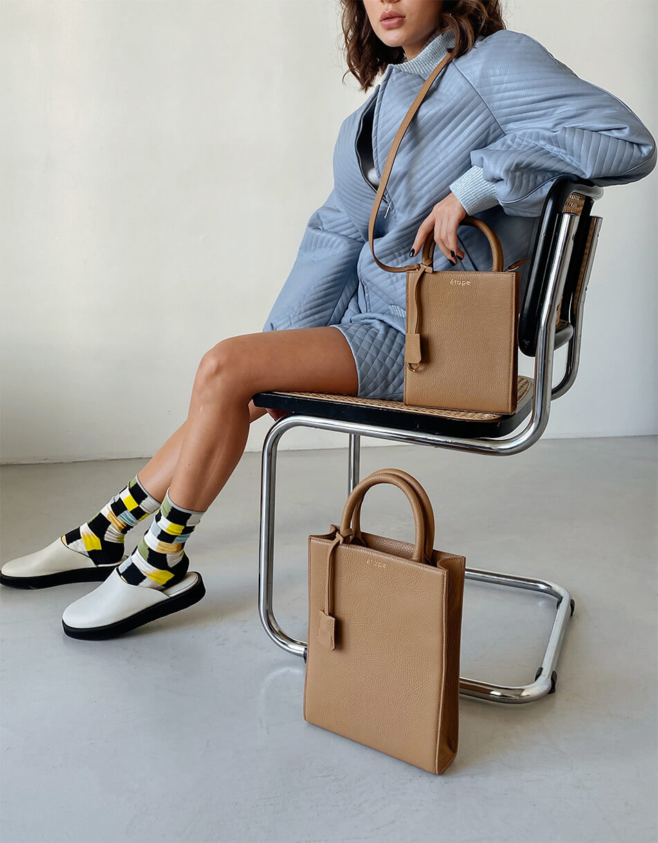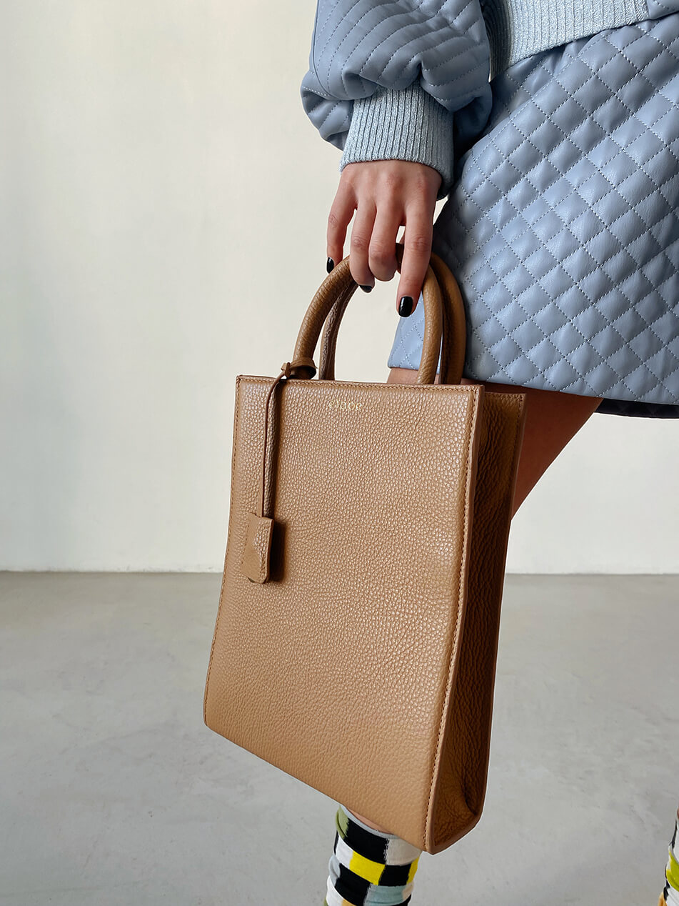 Універсальність цієї вишуканої сумки не тільки в дизайні, але й у двох видах ручок — коротка ергономічна, для комфортного носіння в руці, і довгий знімний ремінь на карабінах, що дозволяє носити сумку як на плечі, так і в якості кроссбоді.