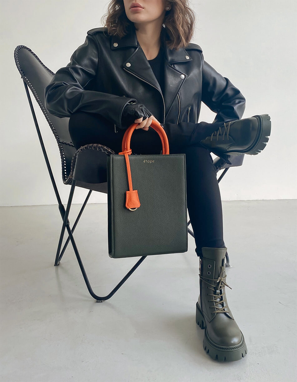 Виготовлена в Україні, шкіра та фурнітура — Італія. Дизайн сумки — лаконічний і універсальний, підходить і як сумка в офіс, і як сумка для casual look. Завдяки своїй конструкції сумка розрахована на те, щоб в неї можна було вмістити тонкий ноутбук, документи, а також все, що необхідно дівчині протягом дня. Сумка закривається зверху на магнітний клапан. Універсальність цієї вишуканої сумки не тільки в дизайні, але й у двох видах ручок — коротка ергономічна, для комфортного носіння в руці, і довгий знімний ремінь на карабінах, що дозволяє носити сумку як на плечі, так і в якості кроссбоді. Всередині сумочки 2 кармана — з блискавкою і без, що просто життєво необхідно для організації внутрішнього простору жіночої сумки. Фольгований лого — акуратний і не кидається в очі. Для того, щоб не витягувати все вміст сумки в пошуках ключів, до ручки прикріплена зручна ключниця, до якої можна прикріпити ключі. Кожна сумка виготовлена з любов’ю вручну з матеріалу флотар. Флотар — це вид натуральної шкіри, яка спеціально оброблена і має цікаву лицьову структуру з ячейками неправильної форми, що нагадують природні перегини шкіри. Натуральна шкіра флотар має матову лицьову поверхню.
