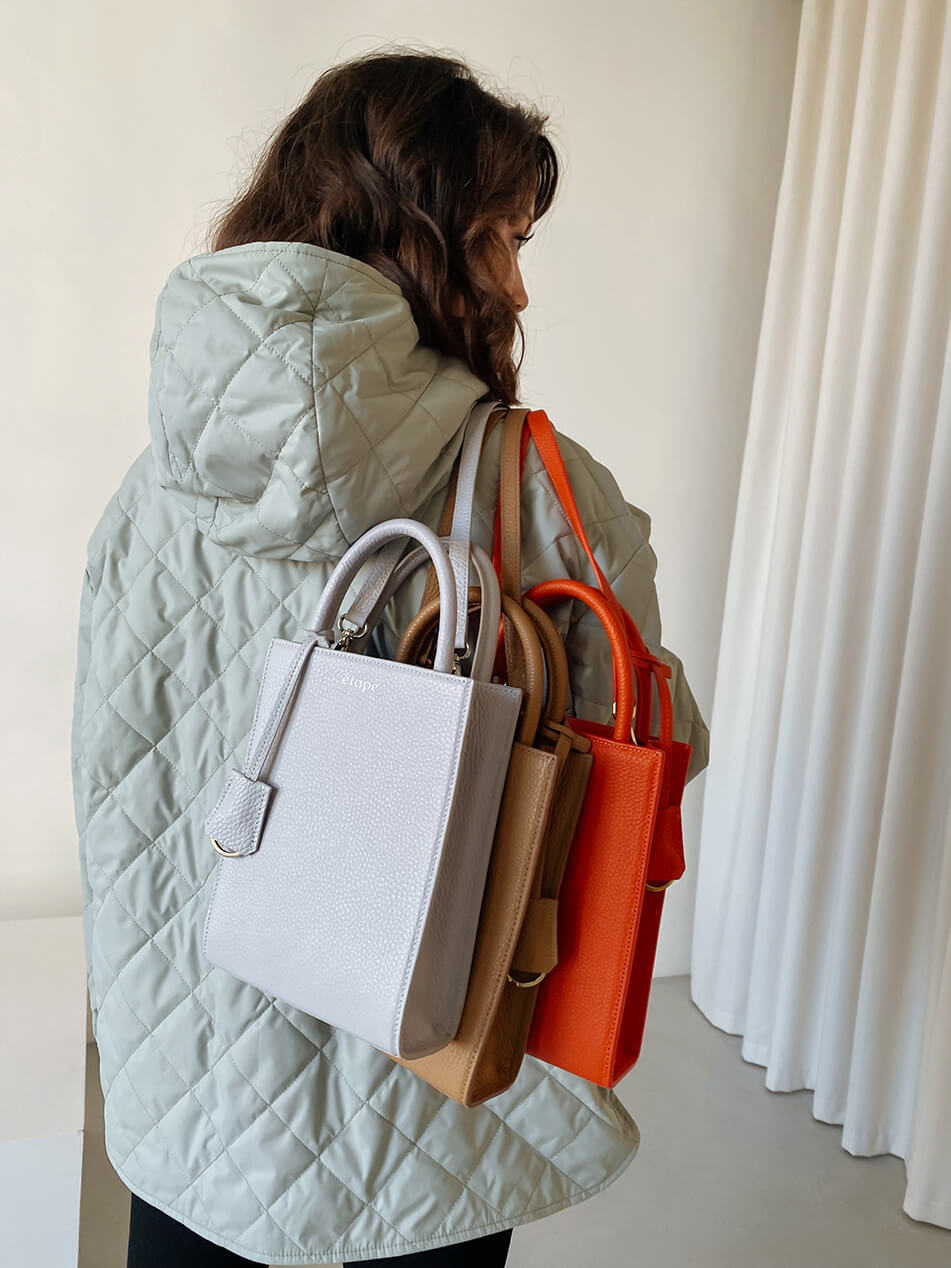 TOY BAG виготовлена в Україні, шкіра та фурнітура – Італія. Дизайн сумки – лаконічний та універсальний, підходить як для офісу, так і для вечірки. Універсальність цієї витонченої сумки не тільки в дизайні, але й у двох видах ручок – короткій ергономічній для комфортного носіння в руці та довгому знімному ремені на карабінах, що дозволяє носити сумку як на плечі, так і в якості кроссбоді. Кожна сумка – як витвір мистецтва, виготовлена вручну з матеріалу флотар*, виробленого на кращих мануфактурах, дуже ніжного на дотик і водночас неймовірно практичного в використанні.