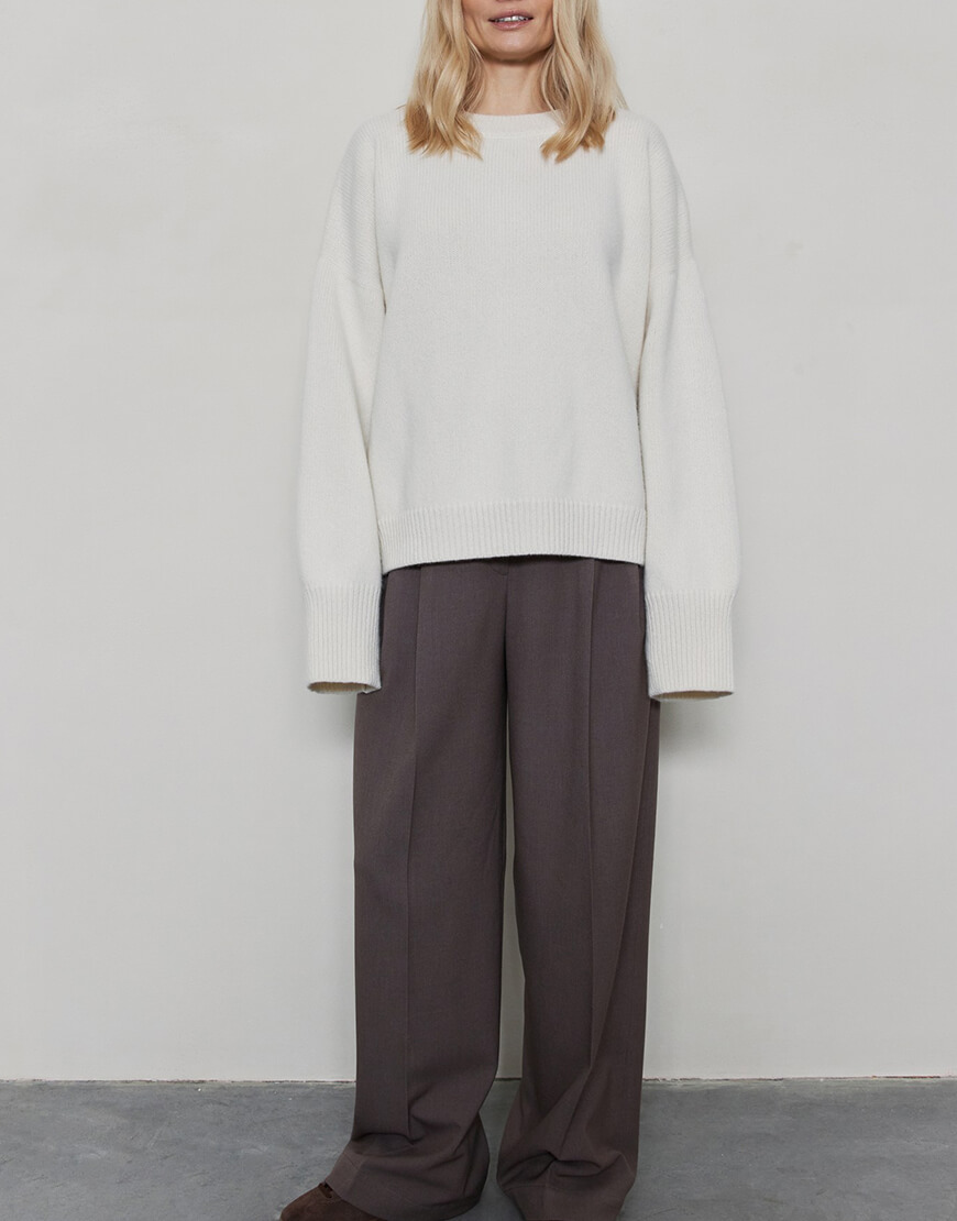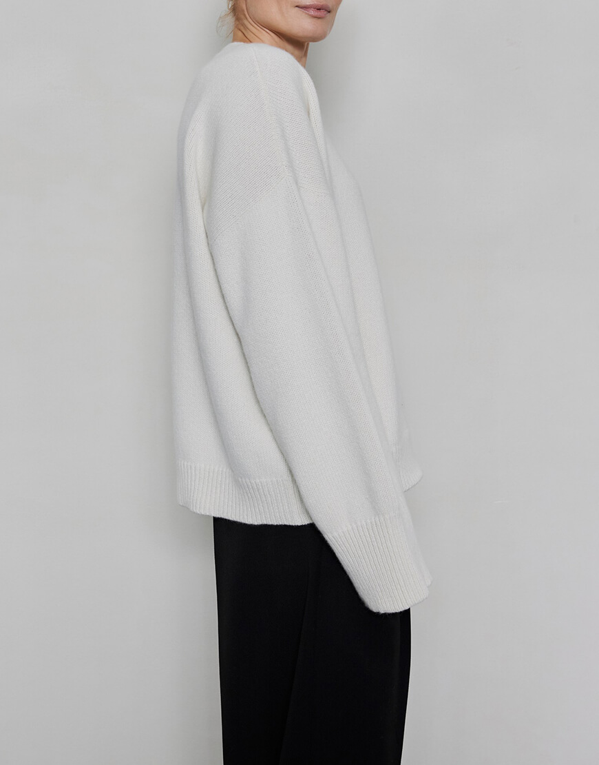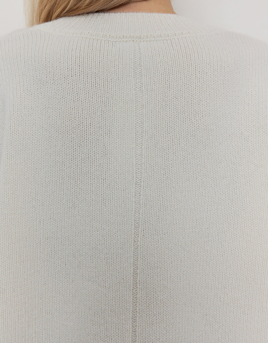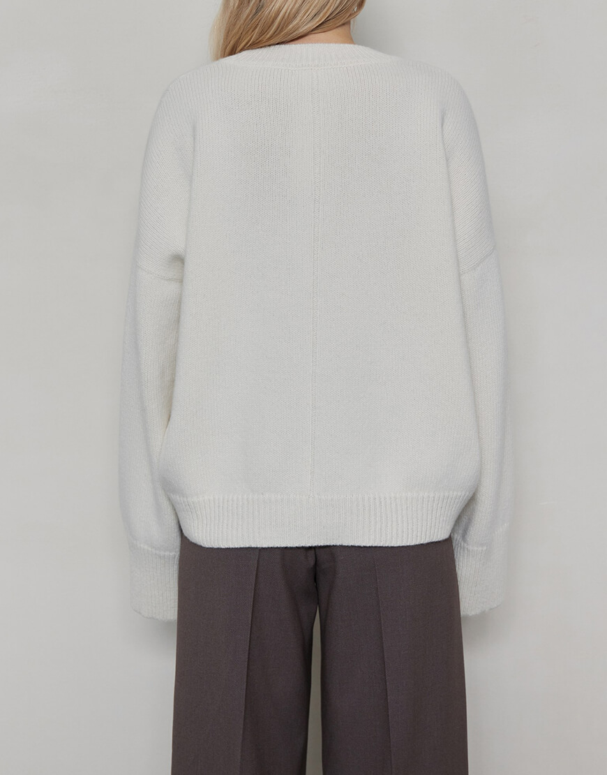 Доставка впродовж 3-10 робочих днівСветр оверсайз з круглою горловиною, виготовлений з італійської вовни мериноса та кашеміру. Подовжений рукав, кругла горловина. На спинці светр оздоблений декоративним швом.