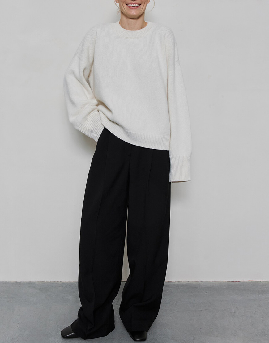 Светр оверсайз з круглою горловиною з вовни мериноса та кашеміру