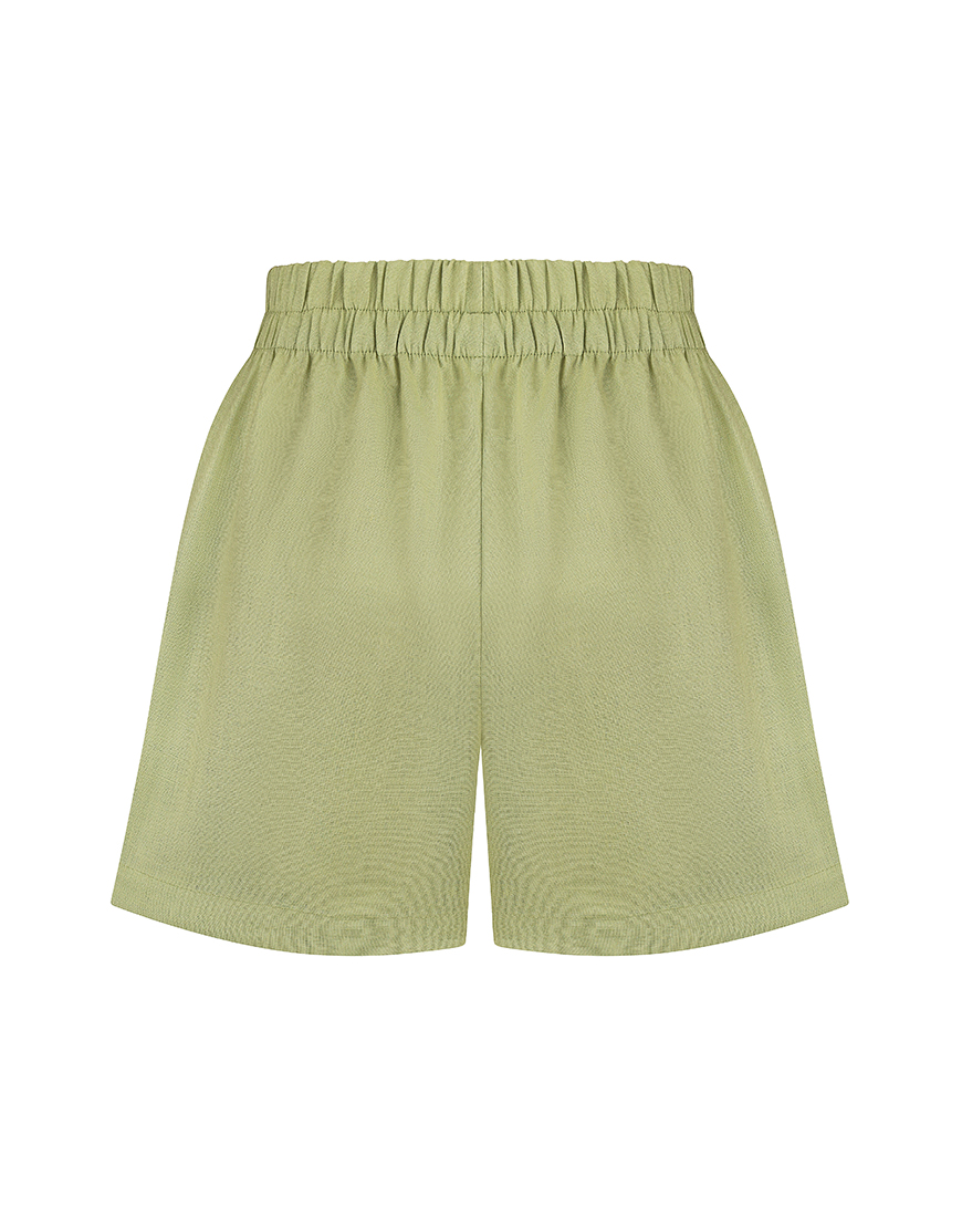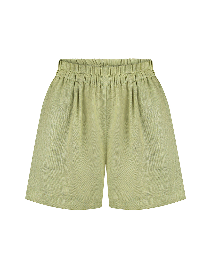 Доставка протягом 5-7 робочих днівШорти середньої довжини, мають вільний крій, форму трапеції, складки, кишені в боковому шві, на м’якій зручній гумці, що не тисне. виготовлені зі 100% натурального льону, сертифікованого за STANDARD 100 від OEKO-TEX®.