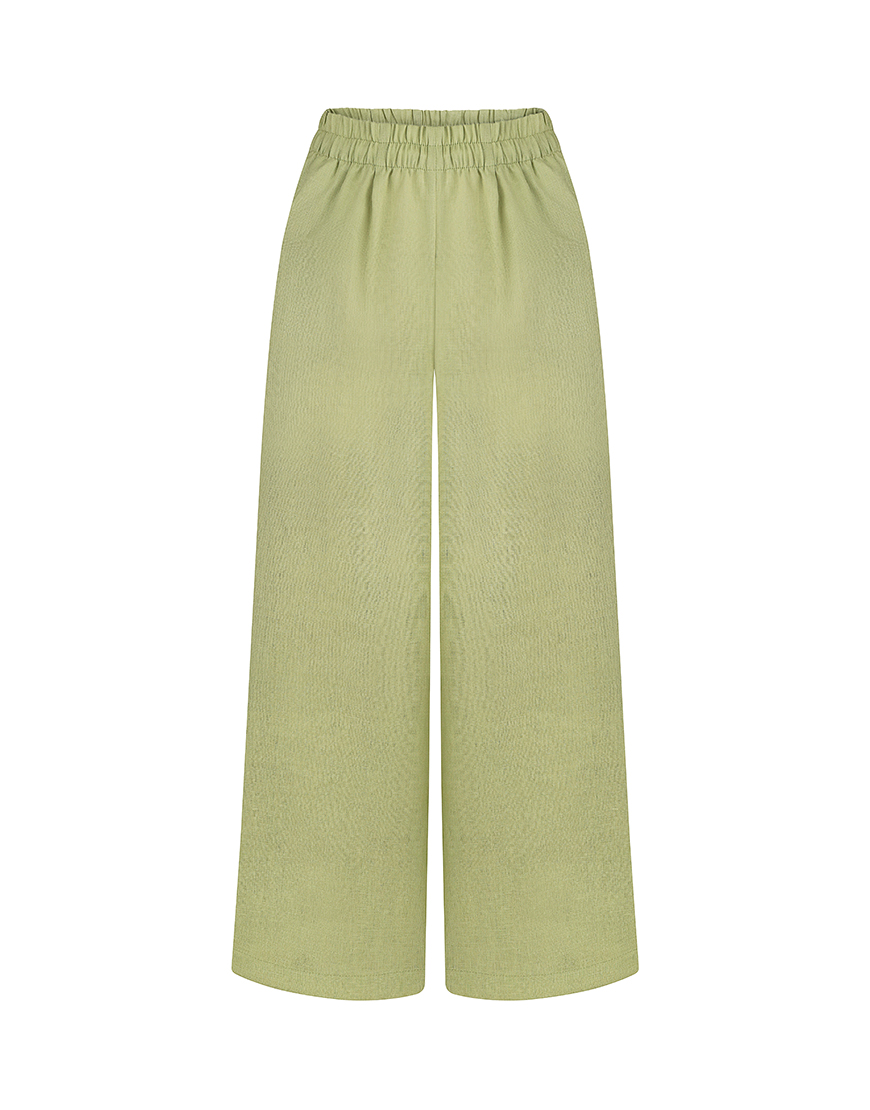 Доставка протягом 5-7 робочих днівШтани лляні широкі, вільного крою, прямі, мають склади, кишені в бічному шві, на м’якій зручній гумці, що не тисне. Виготовлені зі 100% натурального льону, сертифікованого за STANDARD 100 від OEKO-TEX®. Розроблені з урахуванням зросту та підходить для всіх типів фігури.