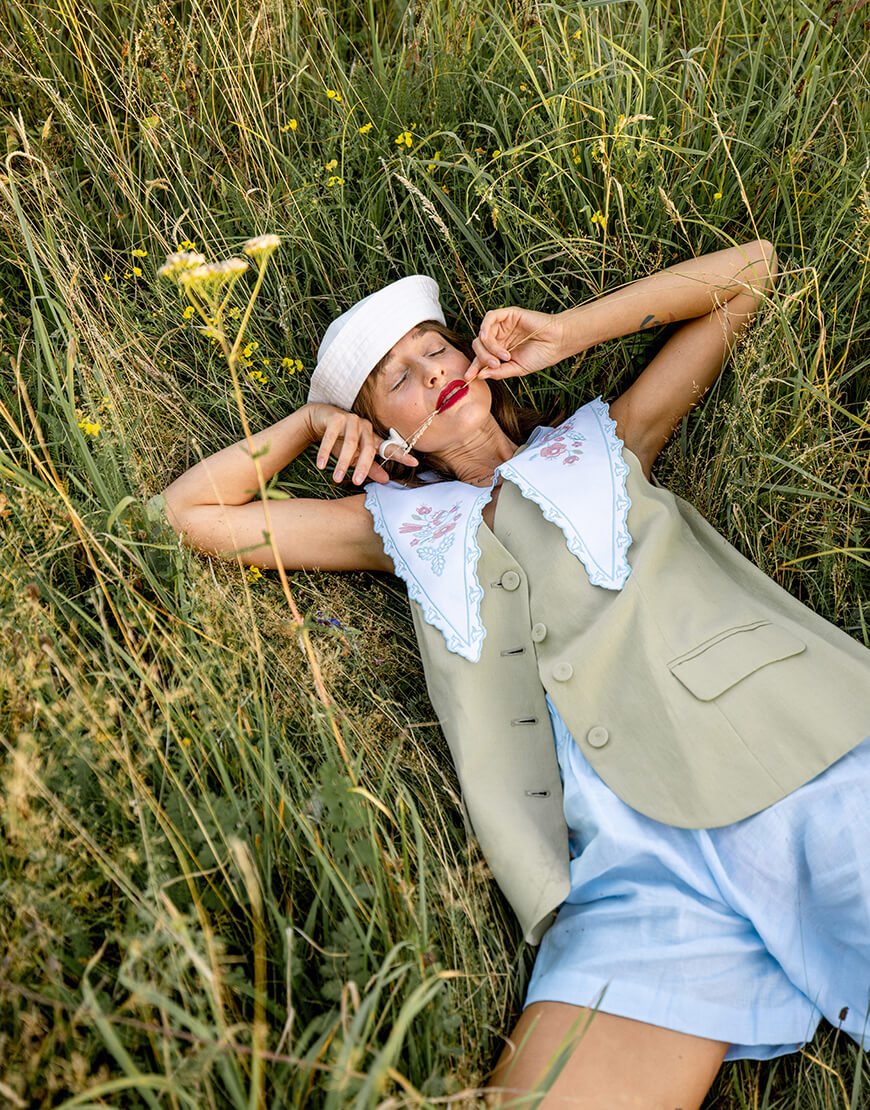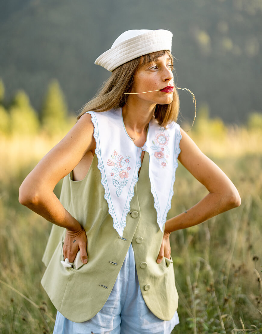 Доставка протягом 1-3 робочих днівКомір, прикрашений кольоровою вишивкою з зображенням птаха. Має зручну застібку та доповнений вишивкою в техніці витинання.