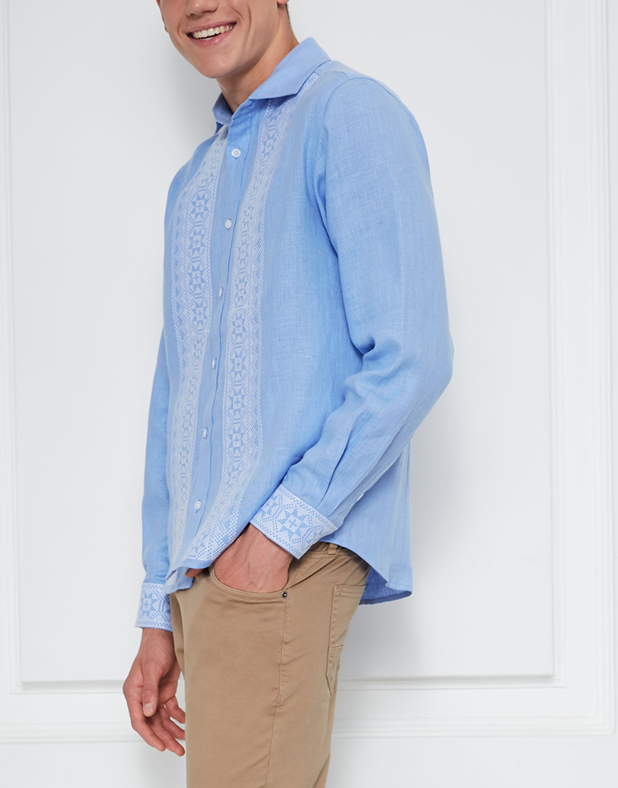 Світле поєднання відтінків, класичний крій і автентичний візерунок роблять цю сорочку ідеальним варіантом як для офісного дрес коду, так і для образу в стилі casual.