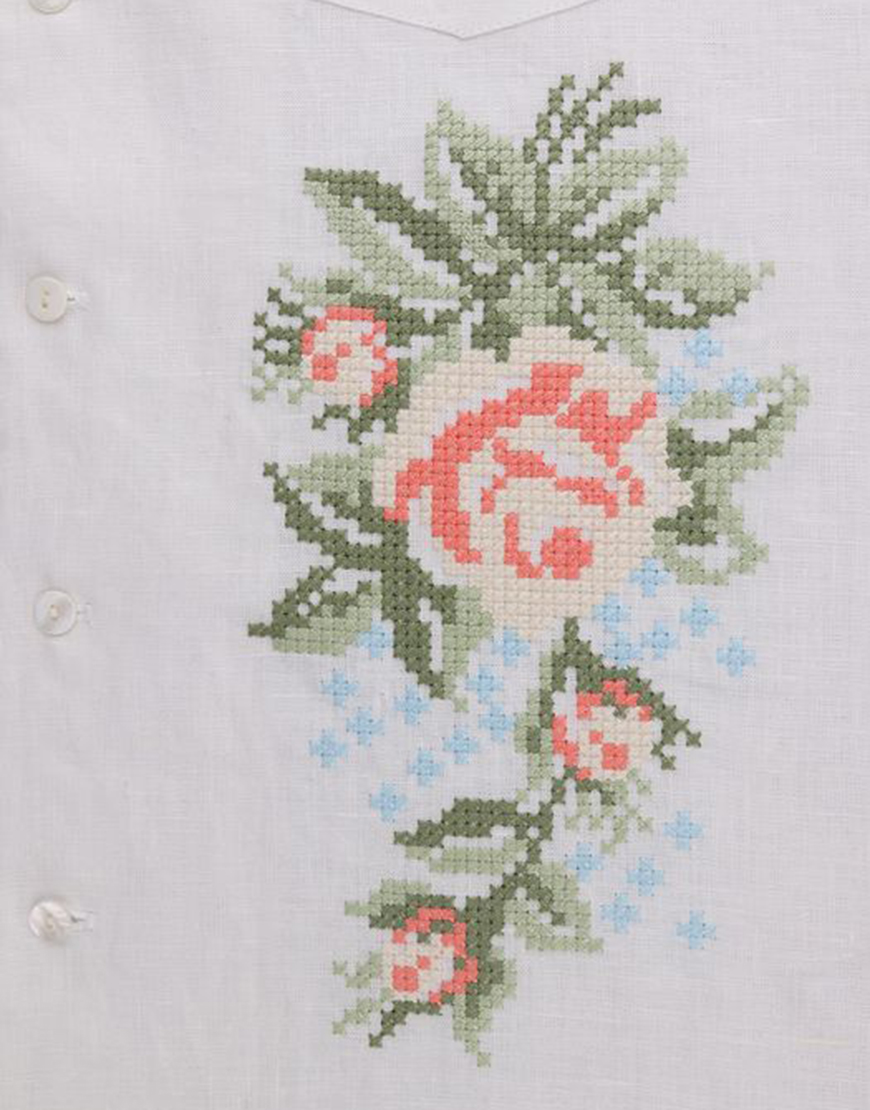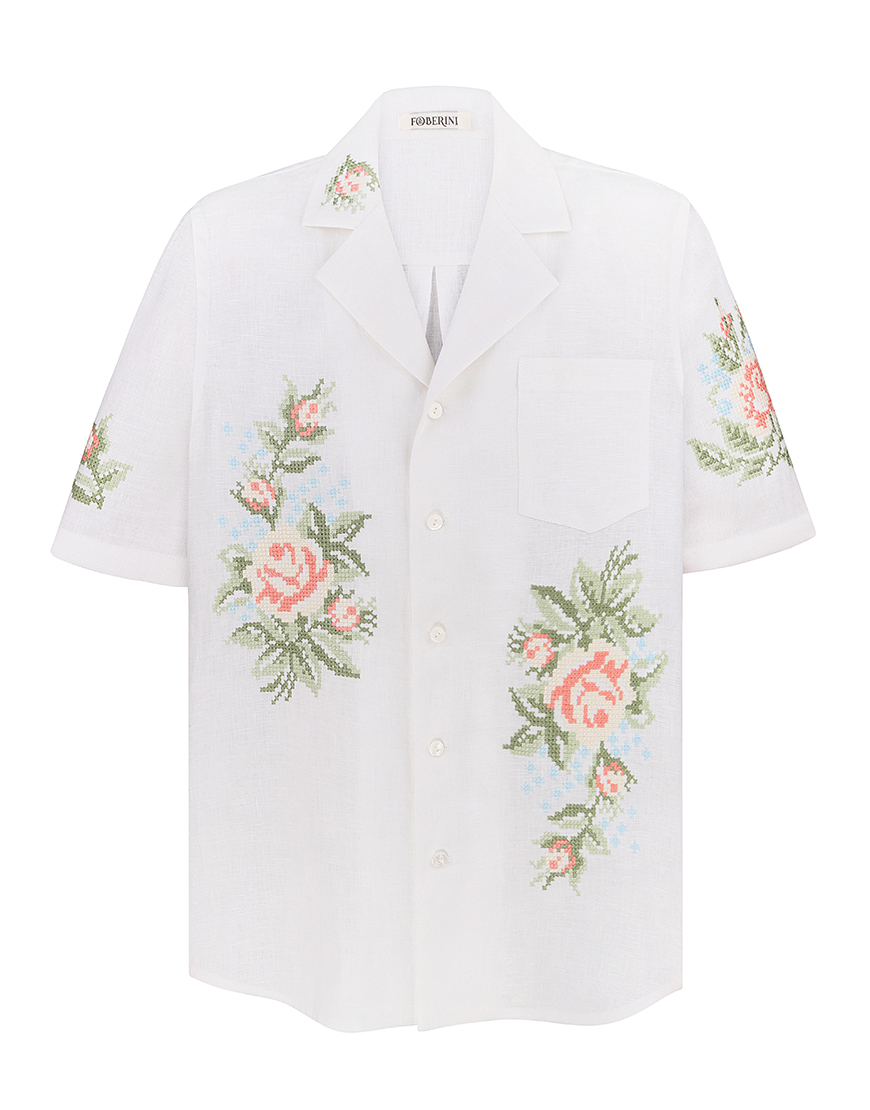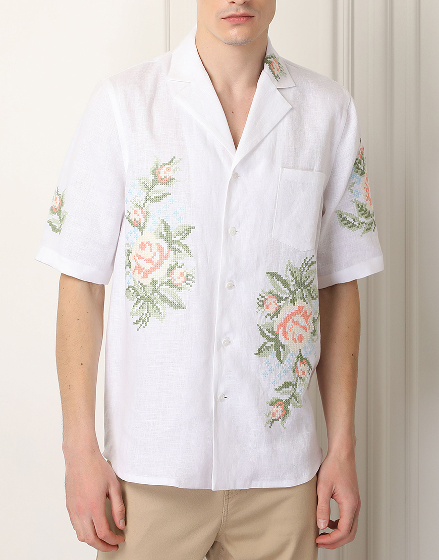 Доставка протягом 3-10 робочих днівСорочка, вишита квітковим орнаментом. Має застібки по всій довжині та зручну кишеню попереду. Відкладний комір, вільний крій та гармонійне поєднання кольорів роблять цю сорочку ідеальним варіантом як урочистих заходів, так і для літнього обаза в стилі casual.