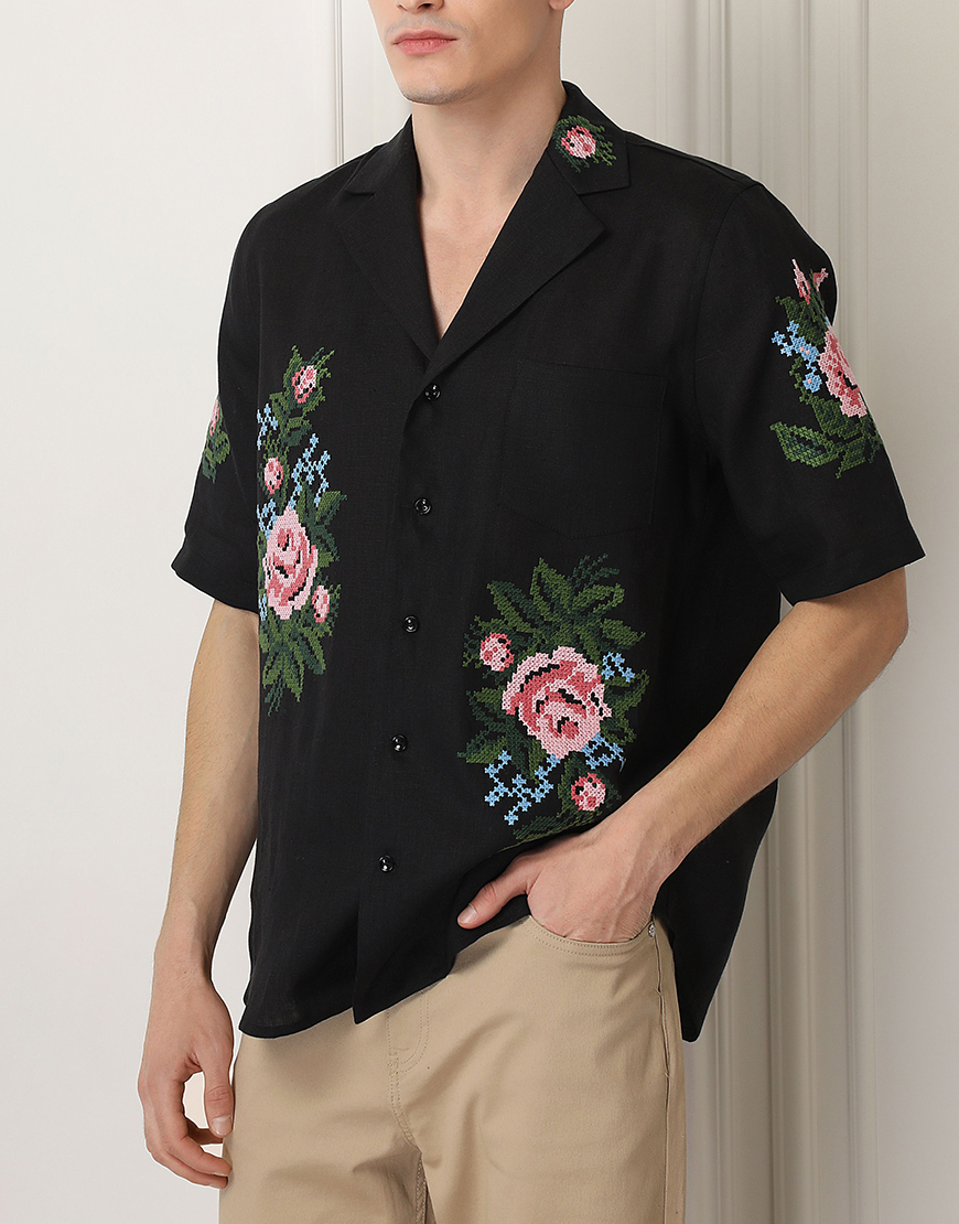 Доставка протягом 3-10 робочих днівСорочка, вишита квітковим орнаментом. Має застібки по всій довжині та зручну кишеню попереду. Відкладний комір, вільний крій та гармонійне поєднання кольорів роблять цю сорочку ідеальним варіантом як урочистих заходів, так і для літнього обаза в стилі casual.